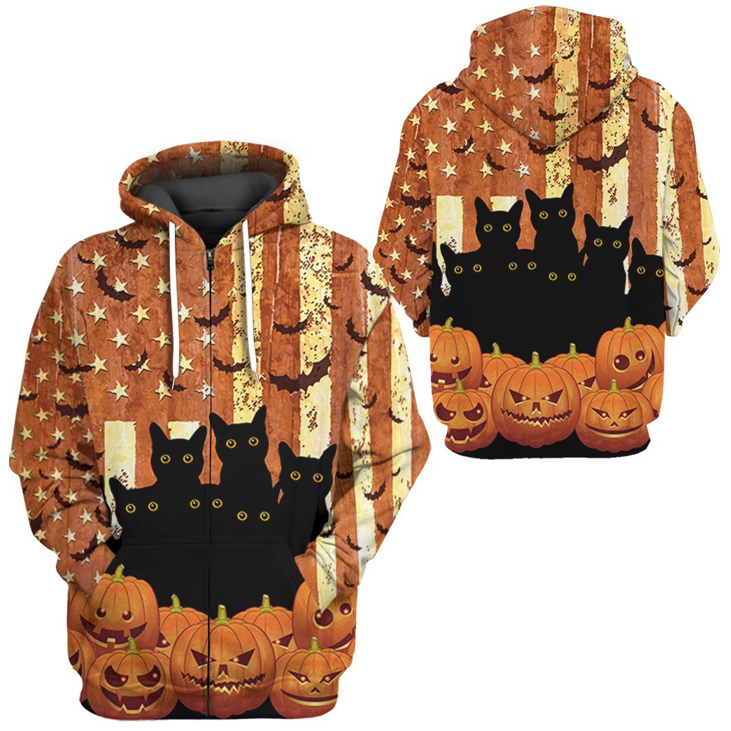Gearhuman 3D American Black Cat Tshirt Hoodie Apparel