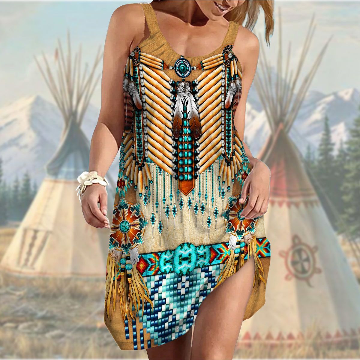 Gearhuman 3D American Native Traditional Sleeveless Beach Dress