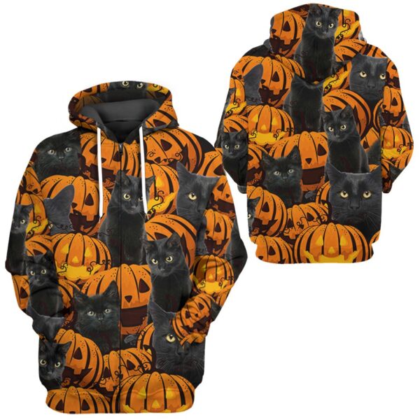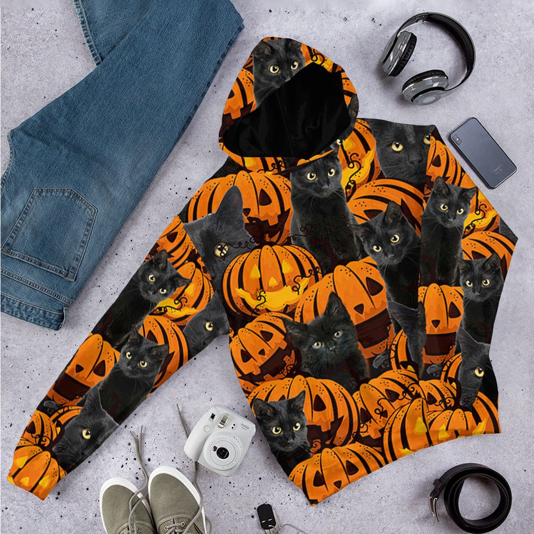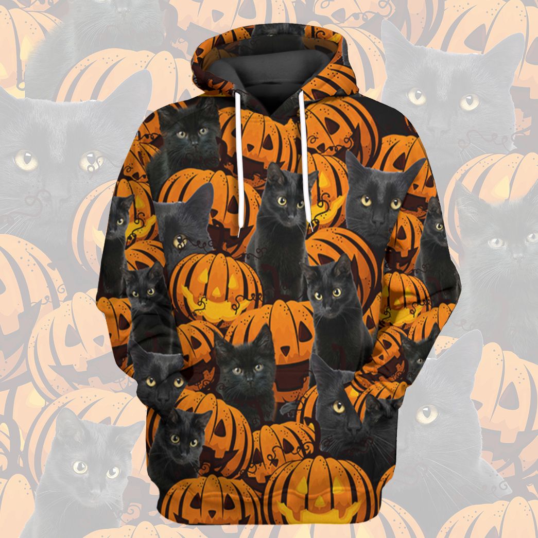 Gearhuman 3D Black Cat And Pumpkin Tshirt Hoodie Apparel