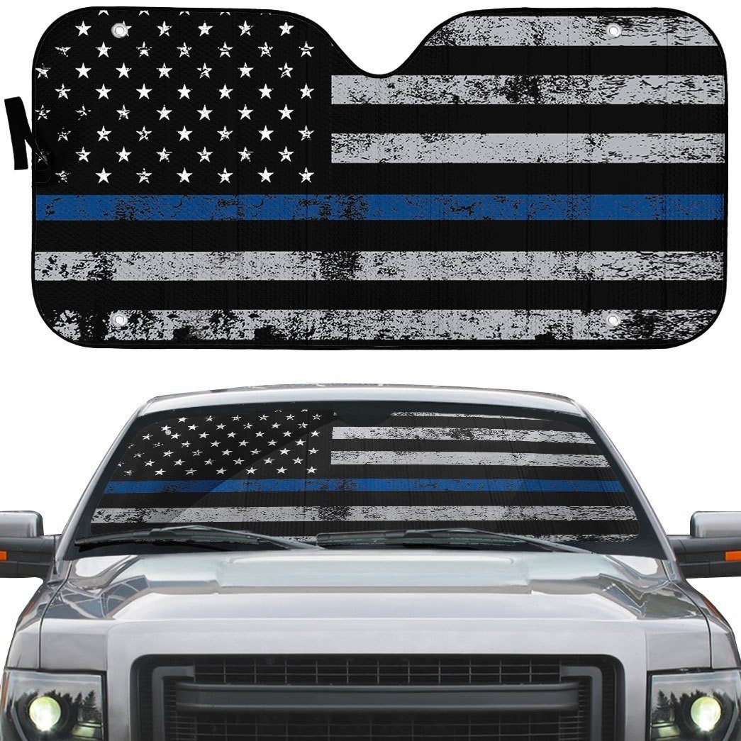 Gearhuman 3D Blue Thin Line American Flag Auto Sunshade