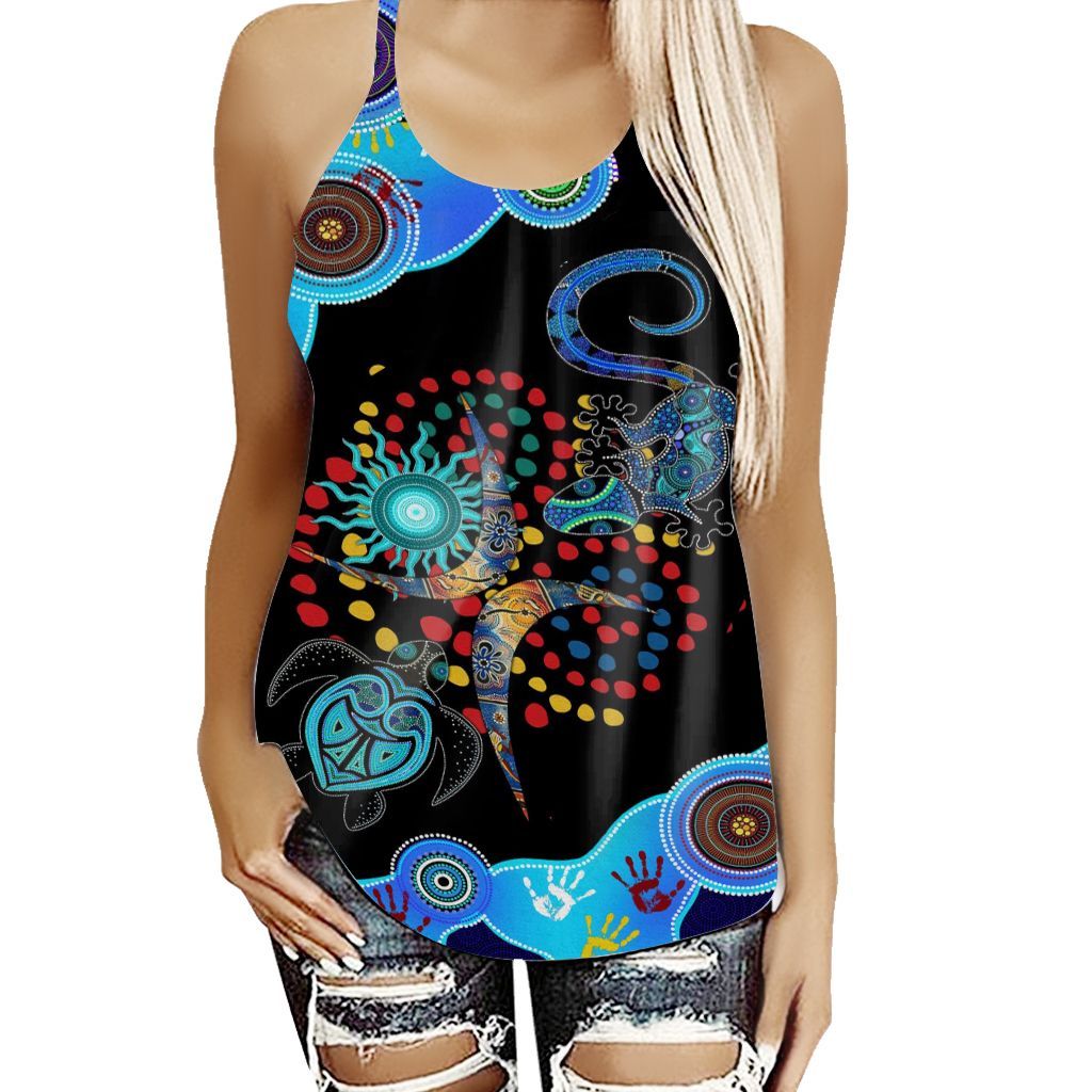 Gearhuman 3D Blue Turtule Lizard Cross Tank Top