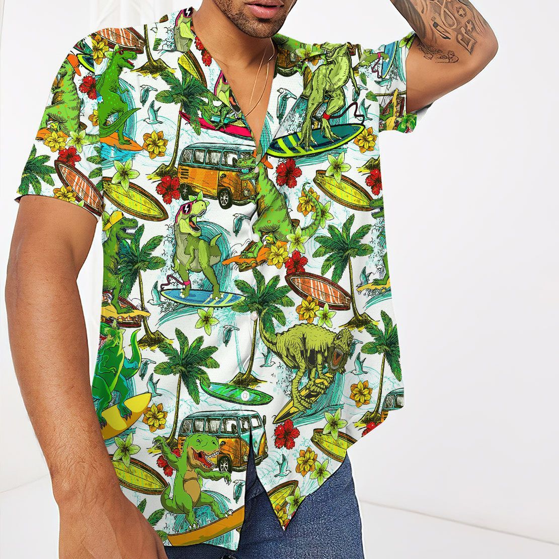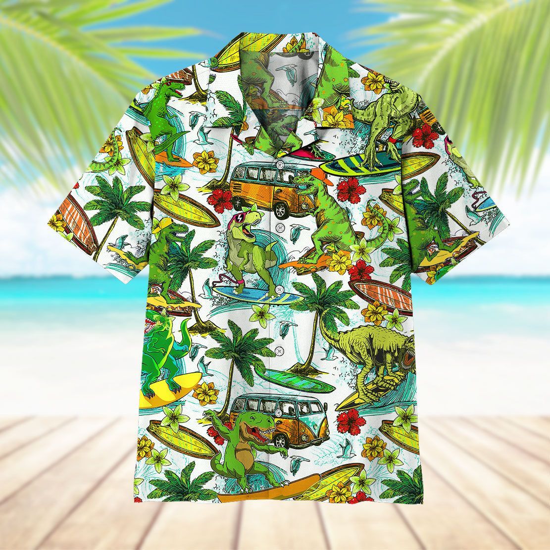 Gearhuman 3D Dinosaur Surfing Hawaii Shirt