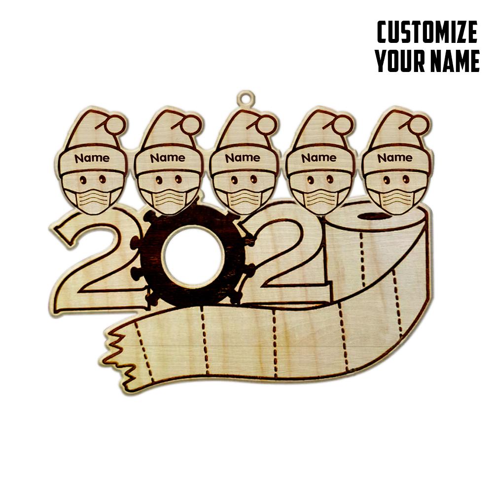 Gearhumans 3D Family Of 5 Mask Toilet Paper 2020 Christmas Ornament Custom Name