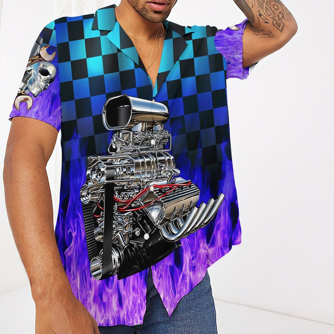 Gearhuman 3D Purple Fire Hot Rod Hawaii Shirt