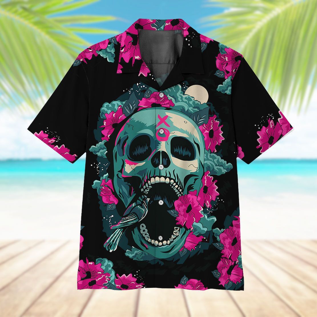 Gearhuman 3D Skull And Flower Hawaii Shirt