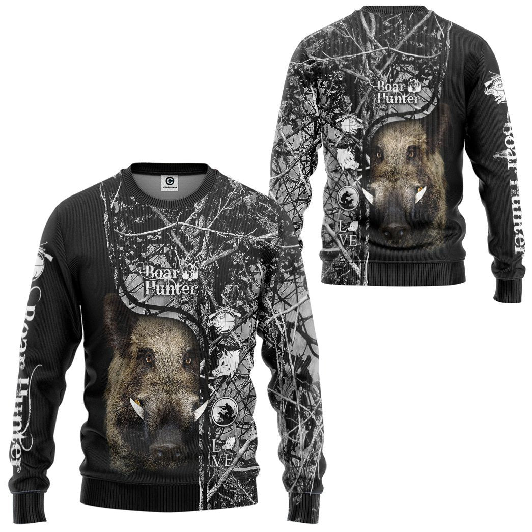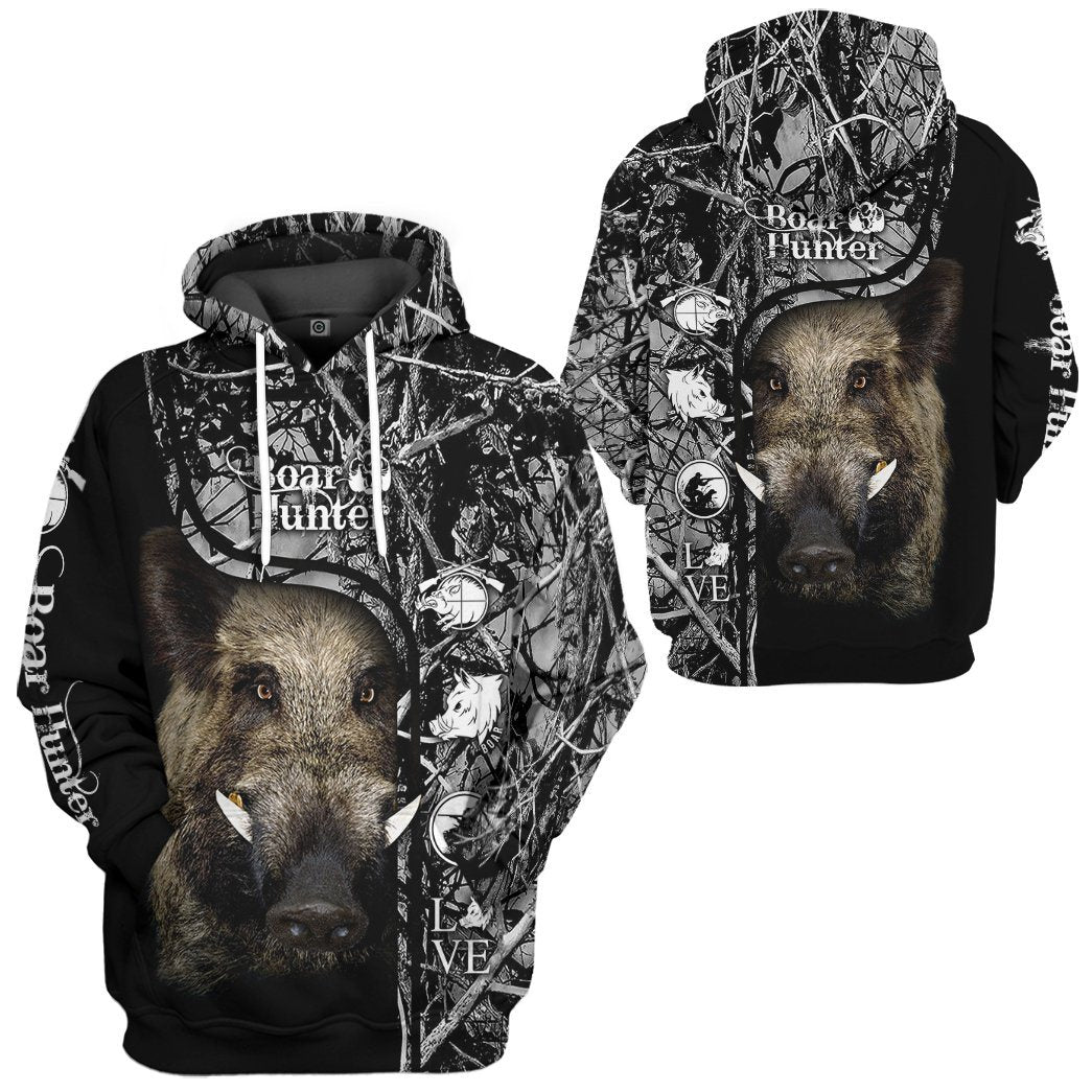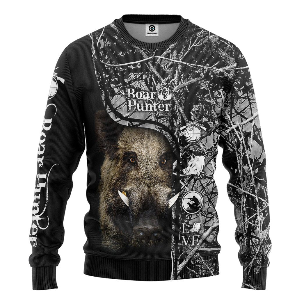 Gearhumans 3D Boar Hunter Black Custom Tshirt Hoodie Apparel