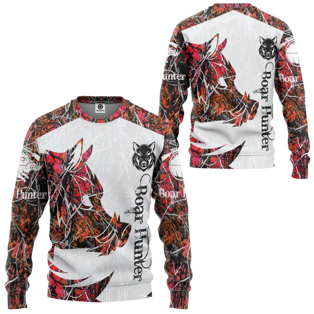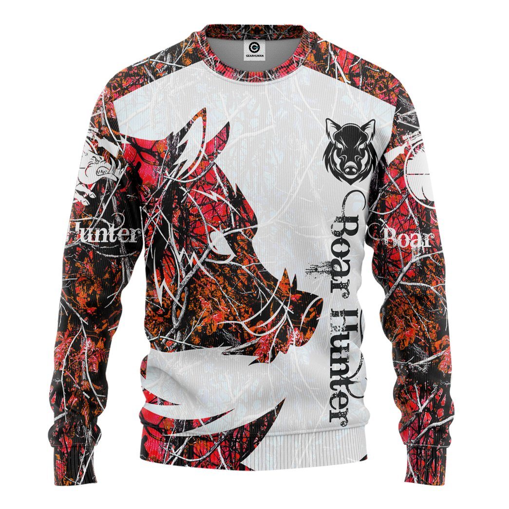 Gearhumans 3D Boar Hunter Red Custom Tshirt Hoodie Apparel