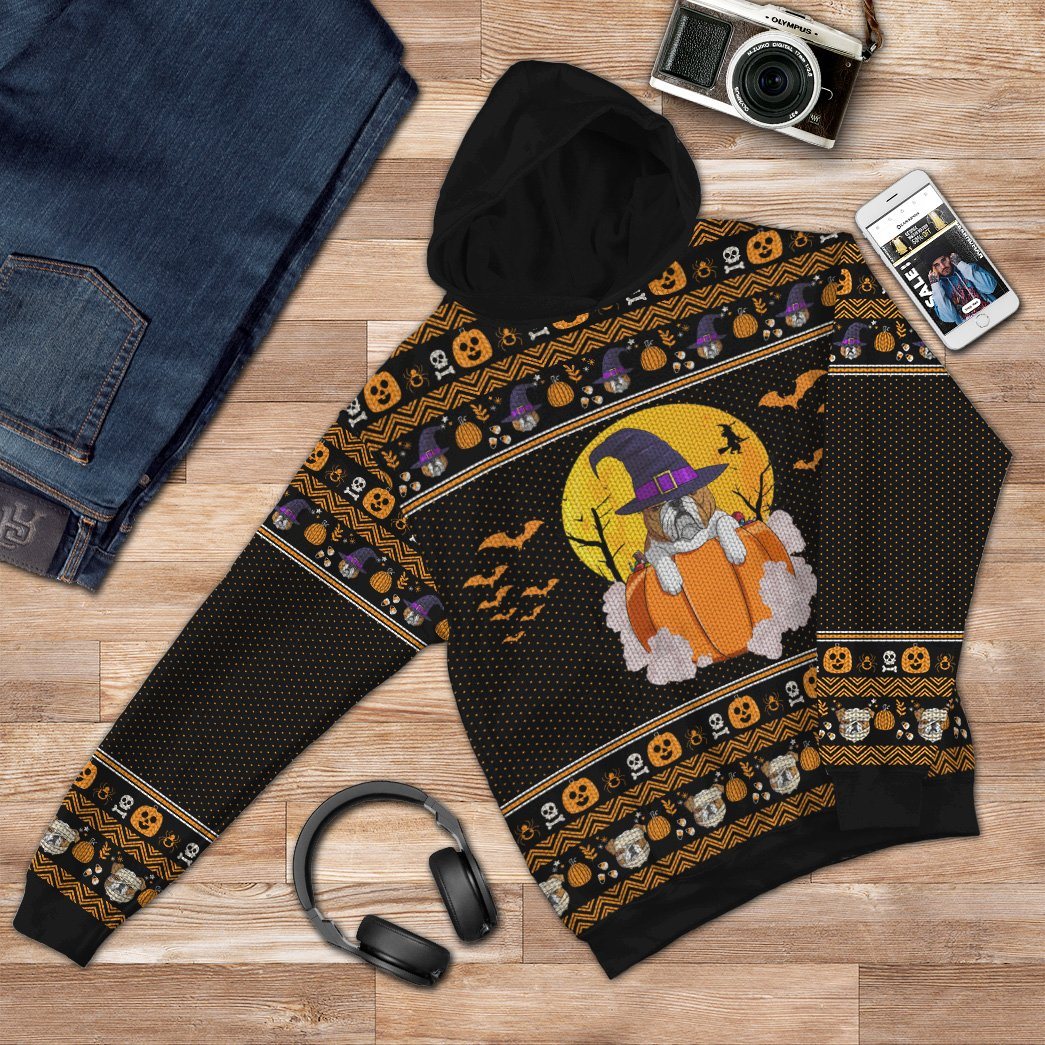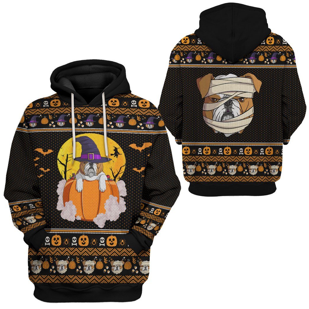 Gearhumans 3D Bulldog Halloween Ugly Custom Hoodie Apparel