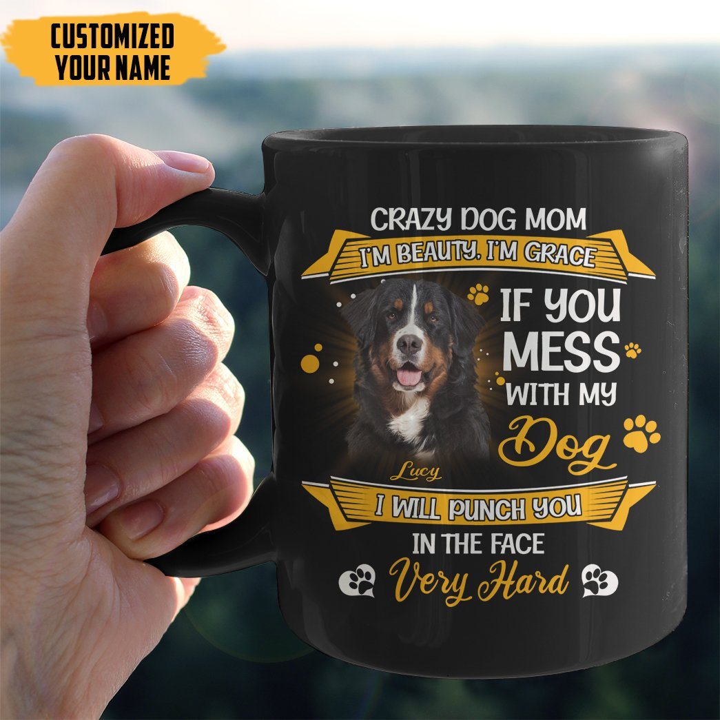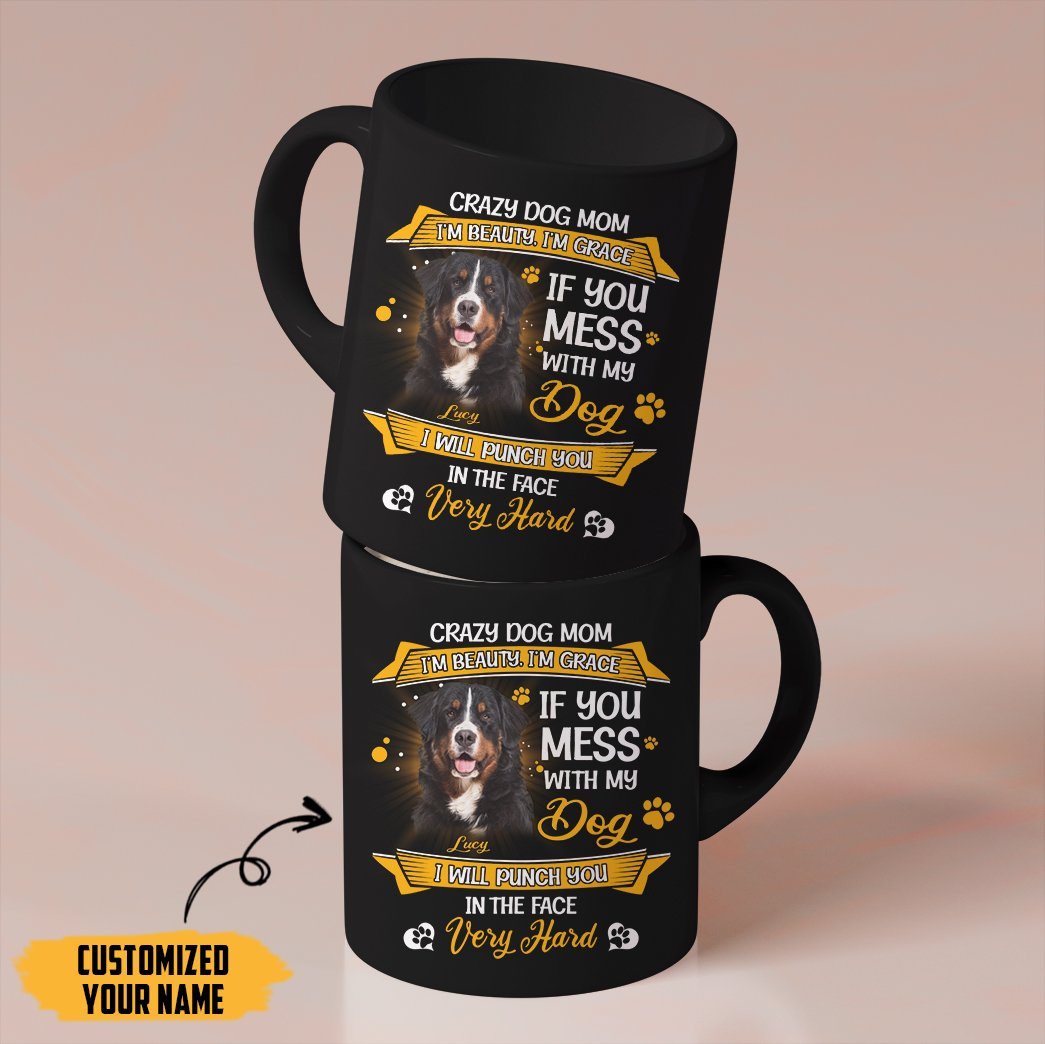 Gearhumans 3D Crazy Dog Mom Bernese Mountain Custom Name Mug