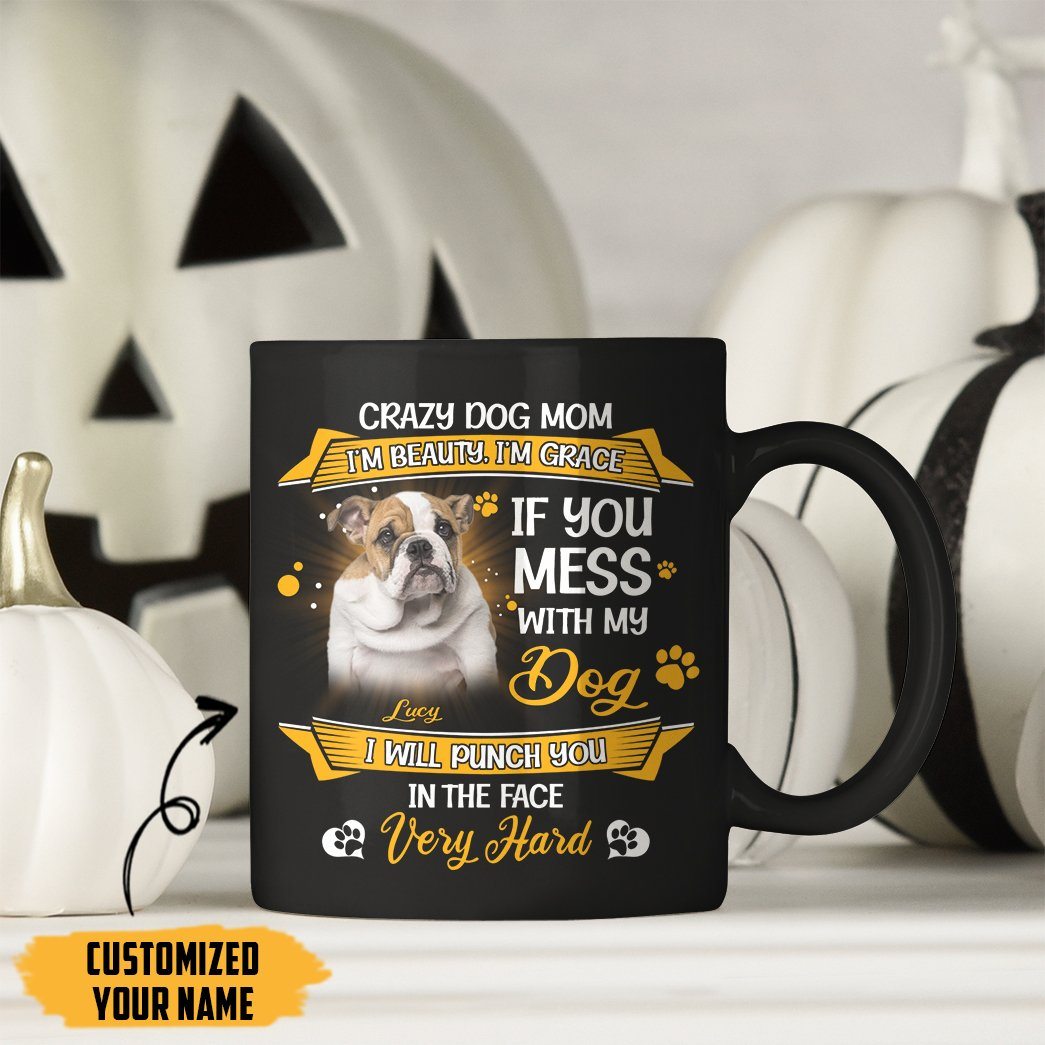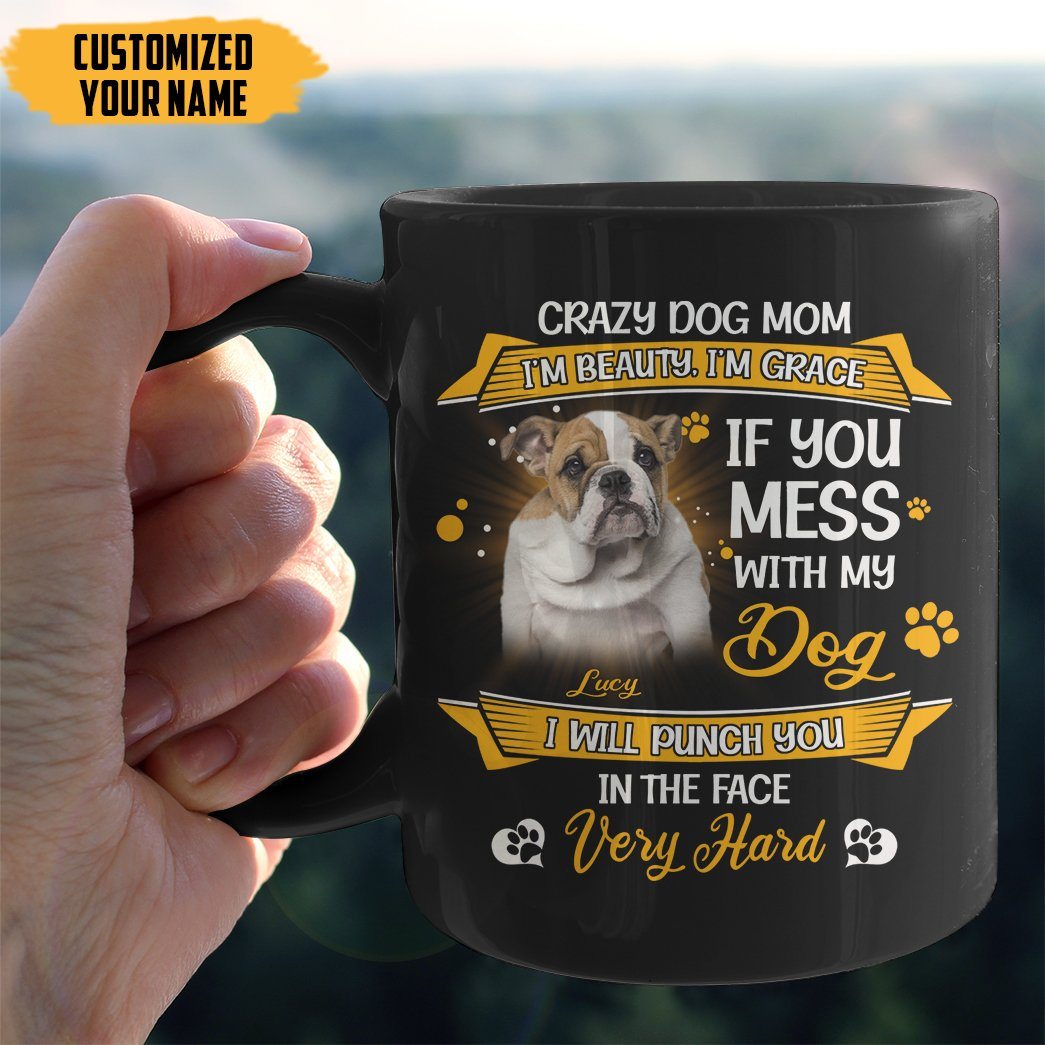 Gearhumans 3D Crazy Dog Mom Bulldog Custom Name Mug