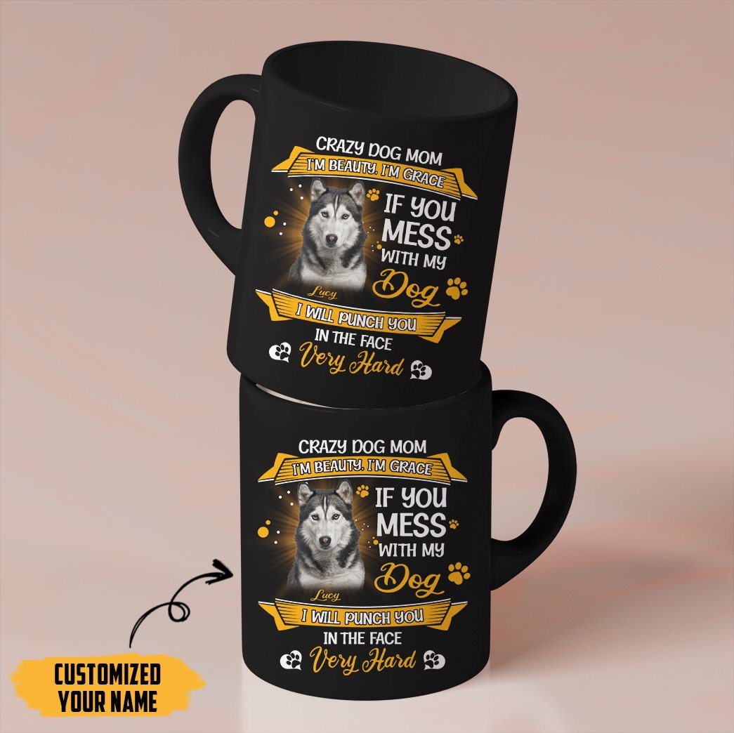 Gearhumans 3D Crazy Dog Mom Husky Custom Name Mug