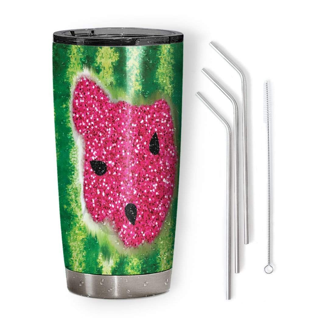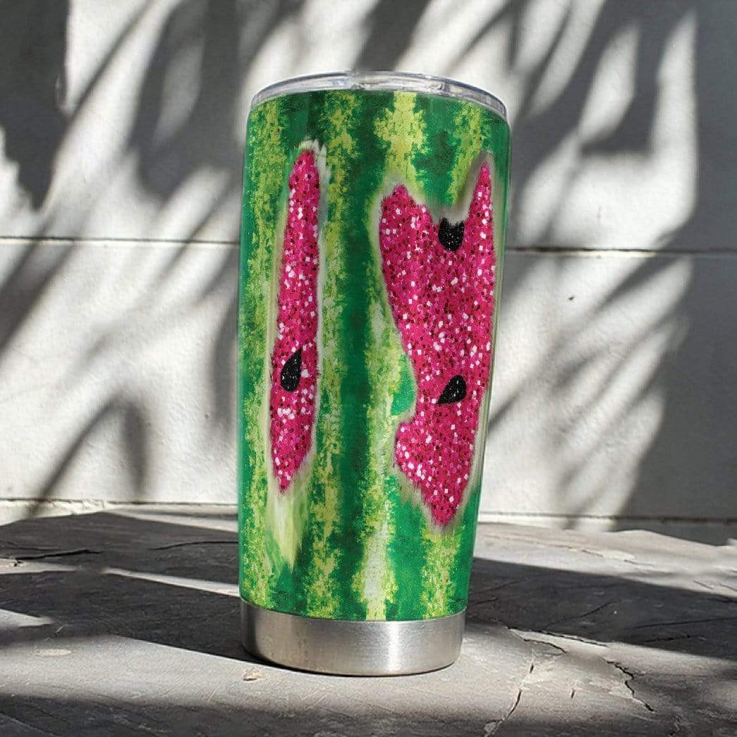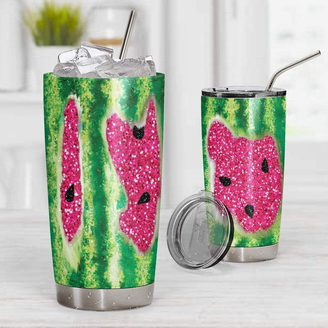Gearhumans 3D Watermelon Glitter Custom Design Vacuum Insulated Tumbler