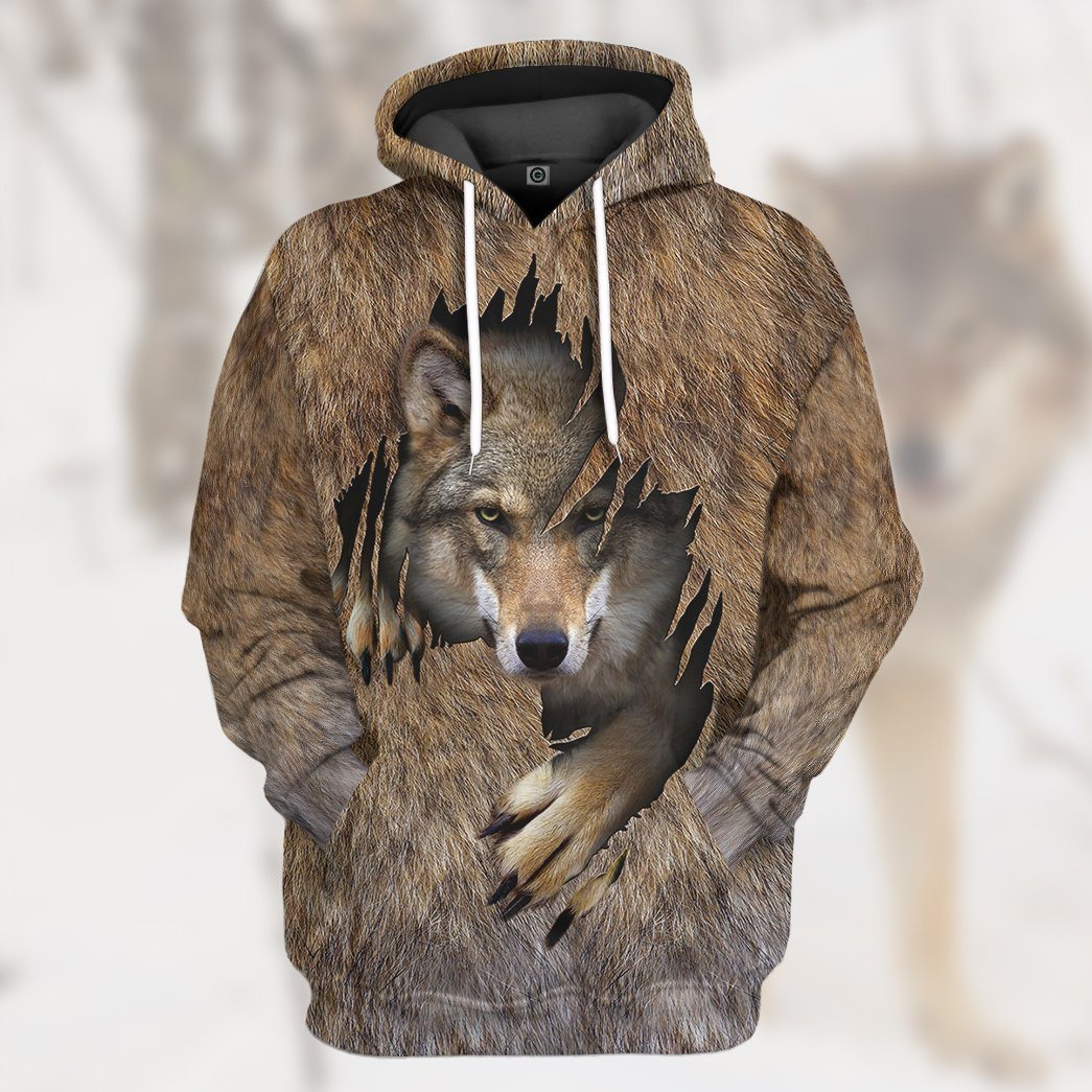 Gearhumans 3D Wolf Tshirt Hoodie Apparel