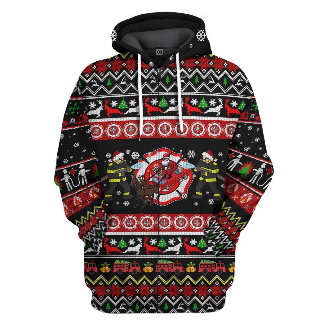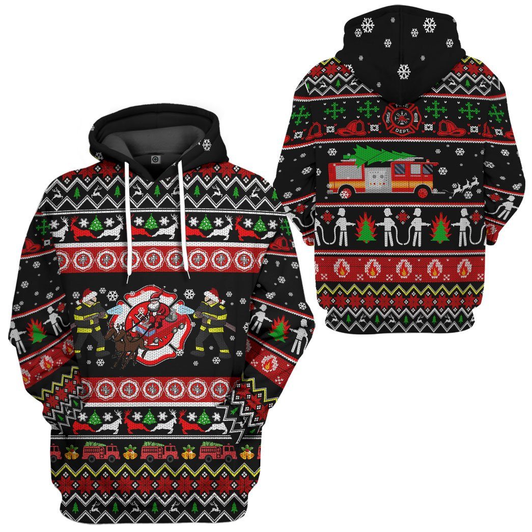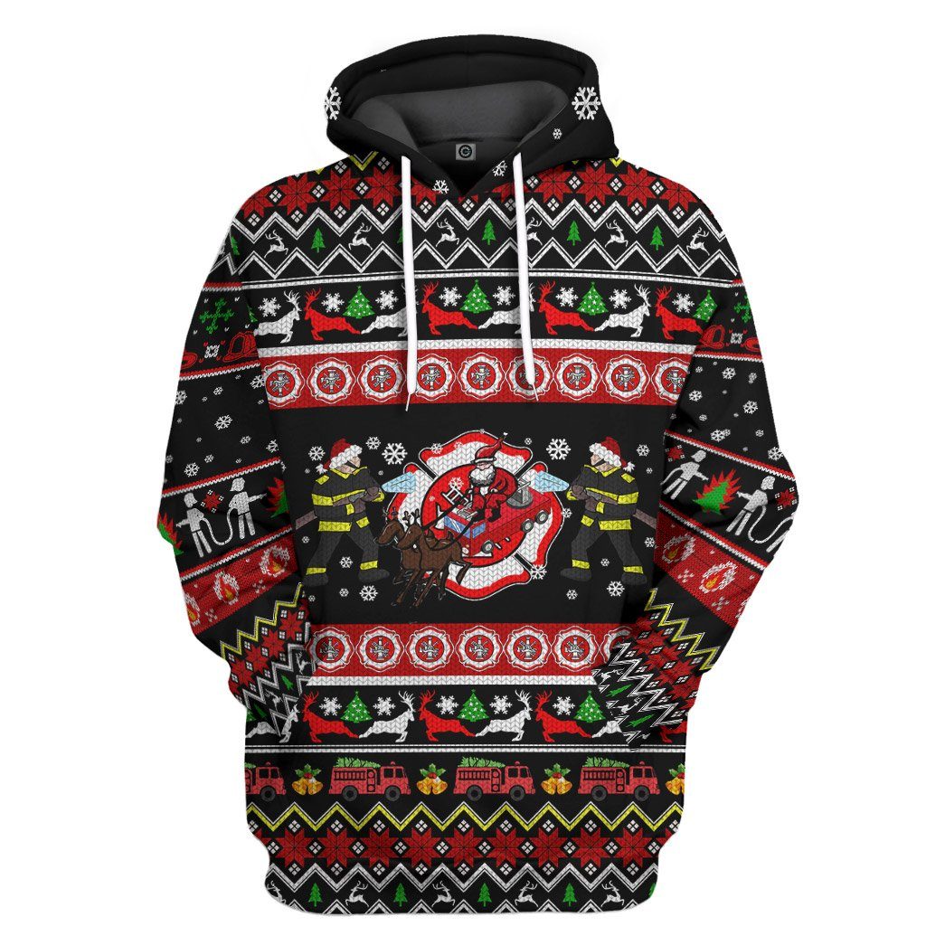 Gearhumans 3D Xmas Firefighter Ugly Christmas Sweater Custom Hoodie Apparel