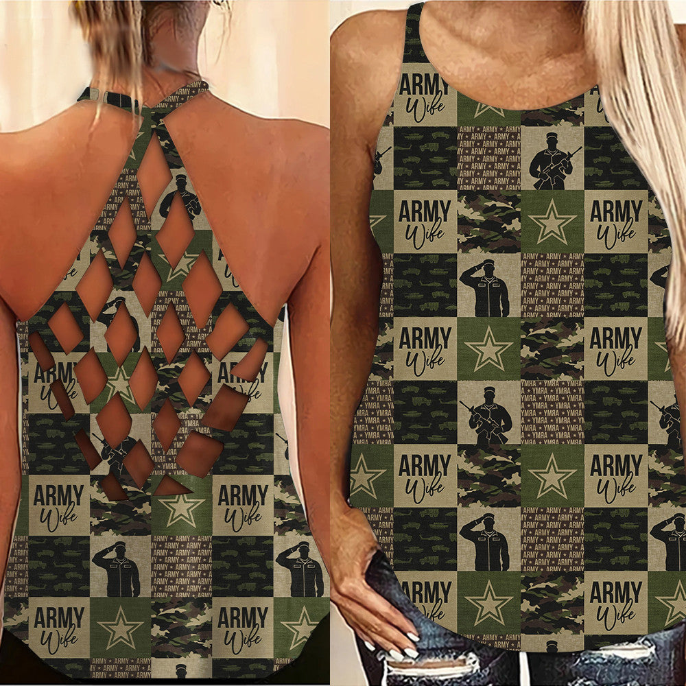 Gearhumans 3D Army Mom Mothers Day Custom Criss Cross Tank Top