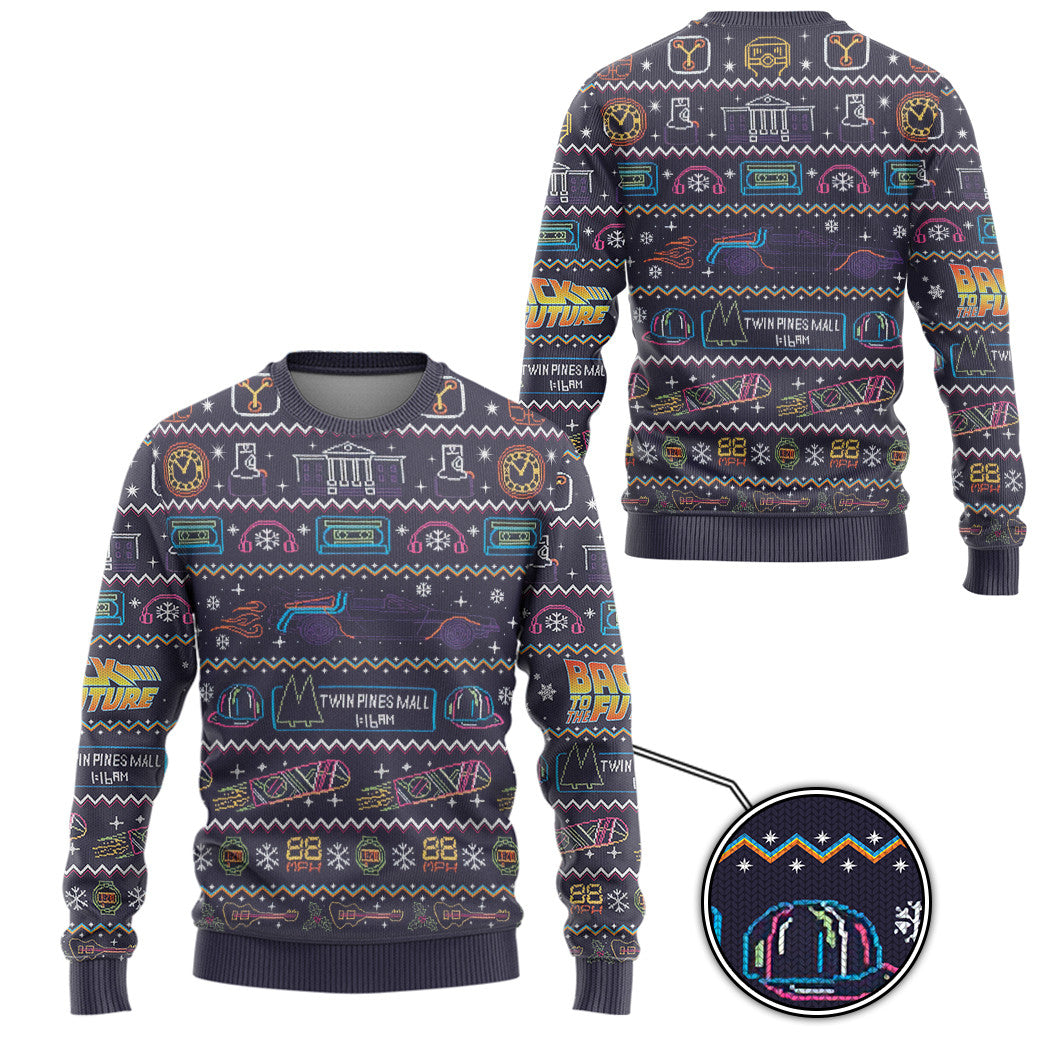 Gearhumans 3D Back To The Future Christmas Edition Custom Ugly Long sleeve