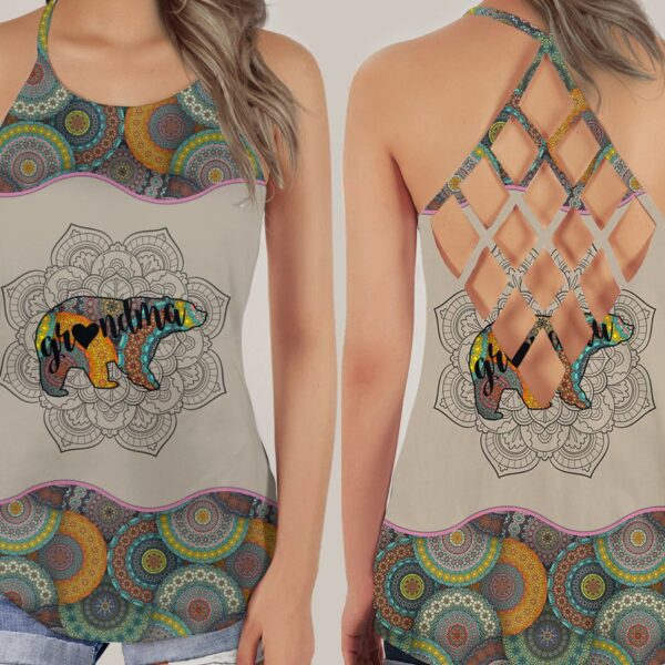 Gearhumans 3D Bear Grandma Mandala Custom Crop Cross Tank Top