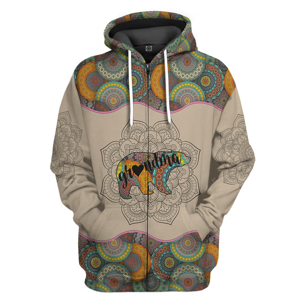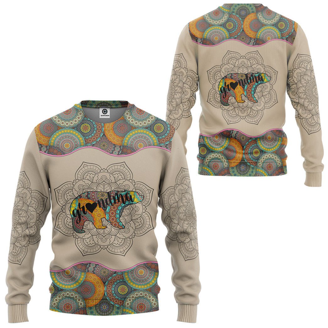 Gearhumans 3D Bear Grandma Mandala Custom Tshirt Hoodie Apparel