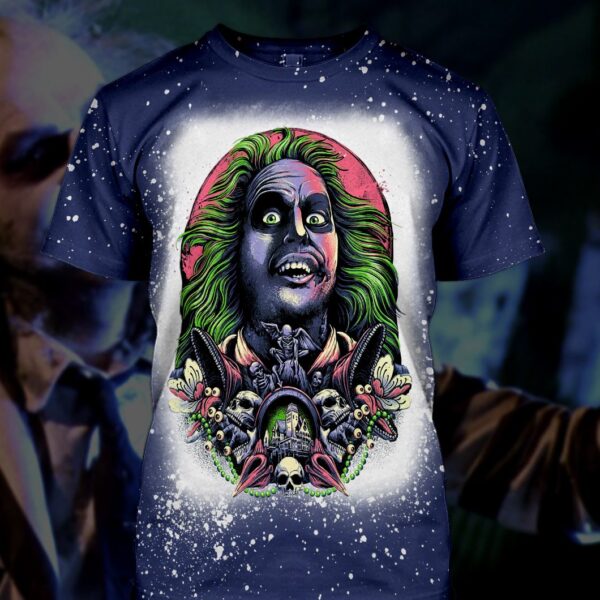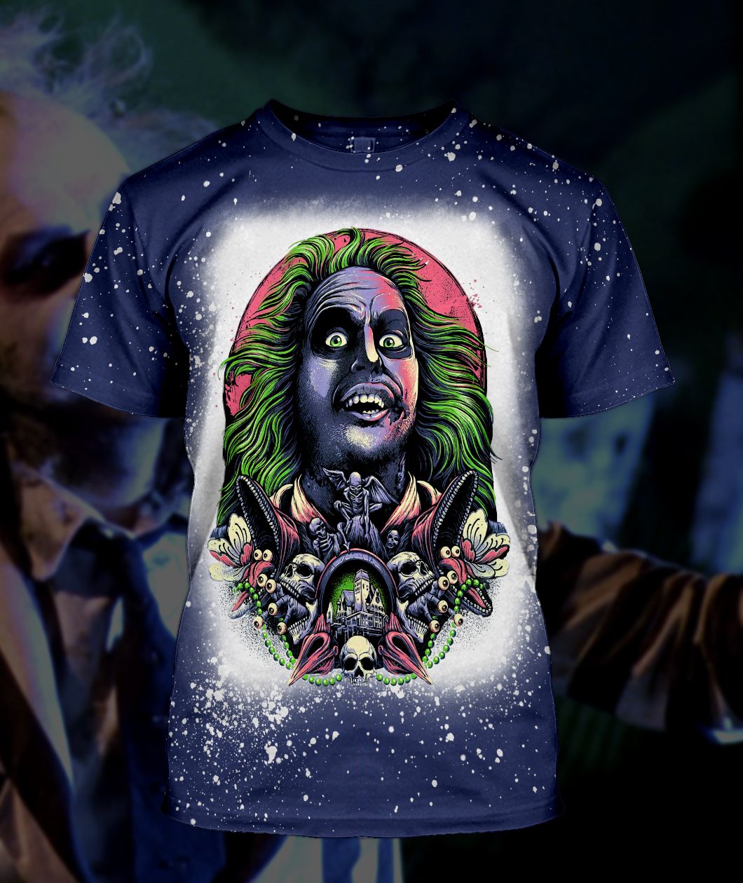 Gearhumans 3D Beetlejuice Its showtime! Custom Bleached Tshirt