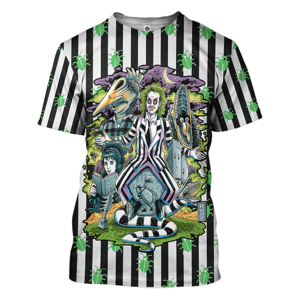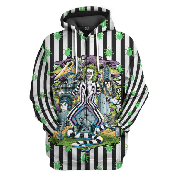 Gearhumans 3D Beetlejuice Stripes and Bugs Custom Hoodie Tshirt Apparel