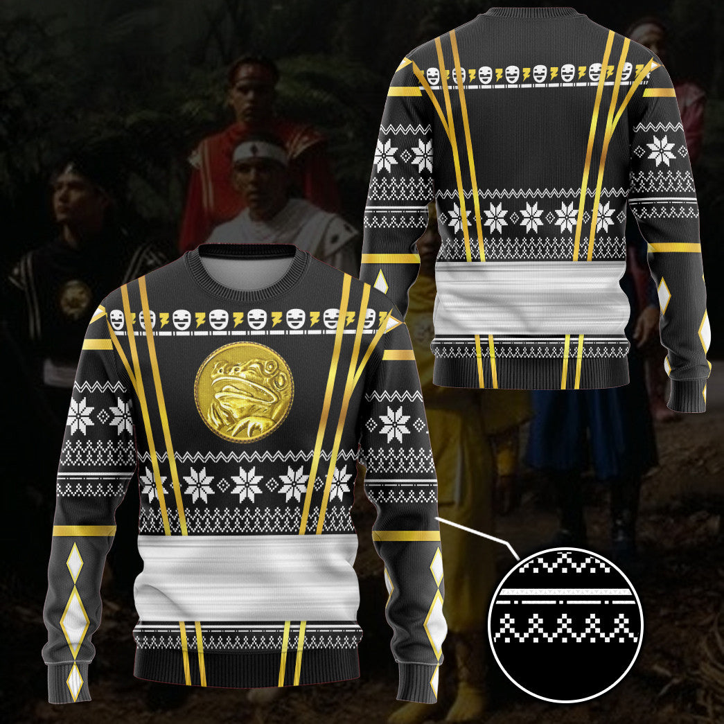 Gearhumans 3D Black Ninja Mighty Morphin Power Rangers Custom Ugly Long sleeve