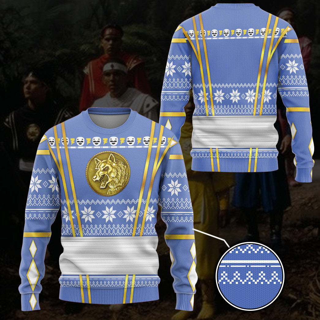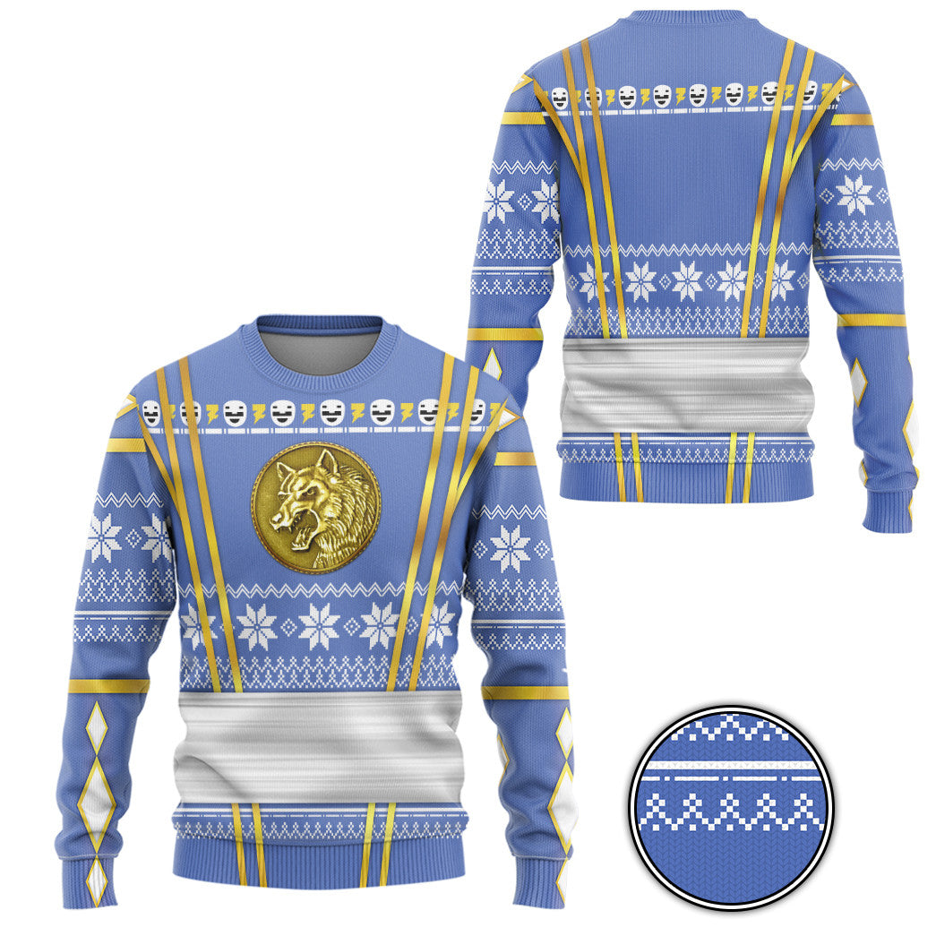 Gearhumans 3D Blue Ninja Mighty Morphin Power Rangers Custom Ugly Long sleeve