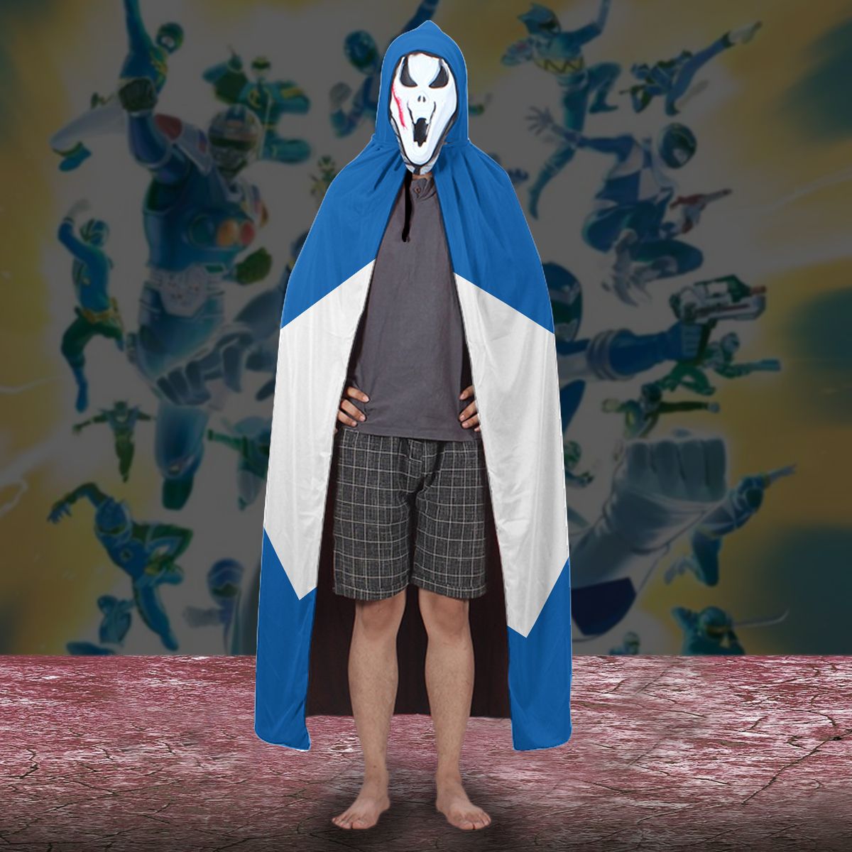 Gearhumans 3D Blue Ranger Custom Hooded Cloak