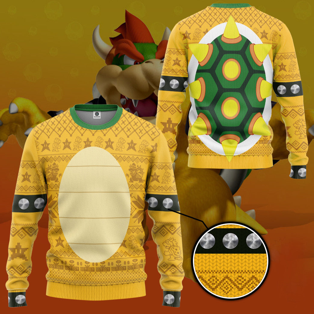 Gearhumans 3D Bowser Ugly Christmas Cosplay Custom Ugly Long sleeve