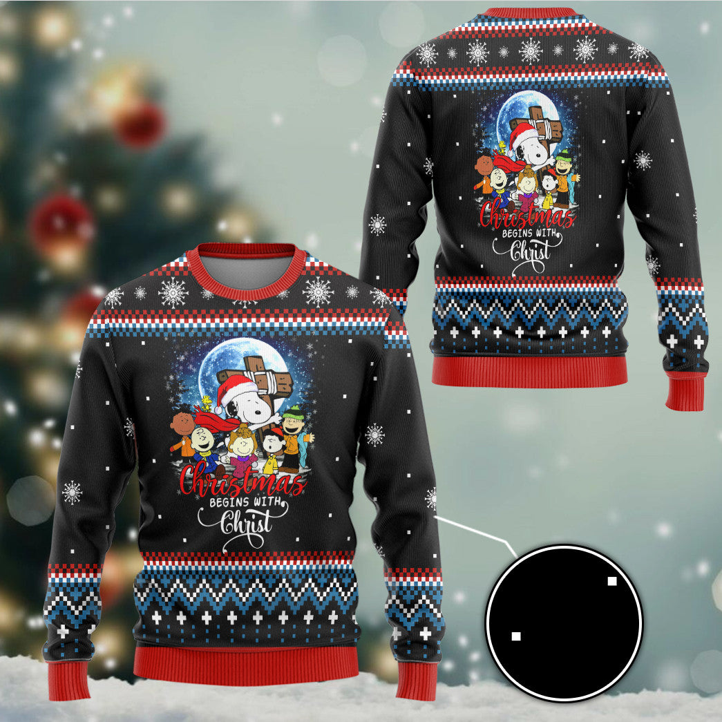 Gearhumans 3D Christmas Begins With Christ Custom Ugly Long sleeve