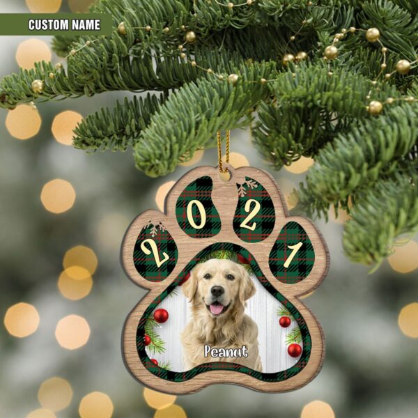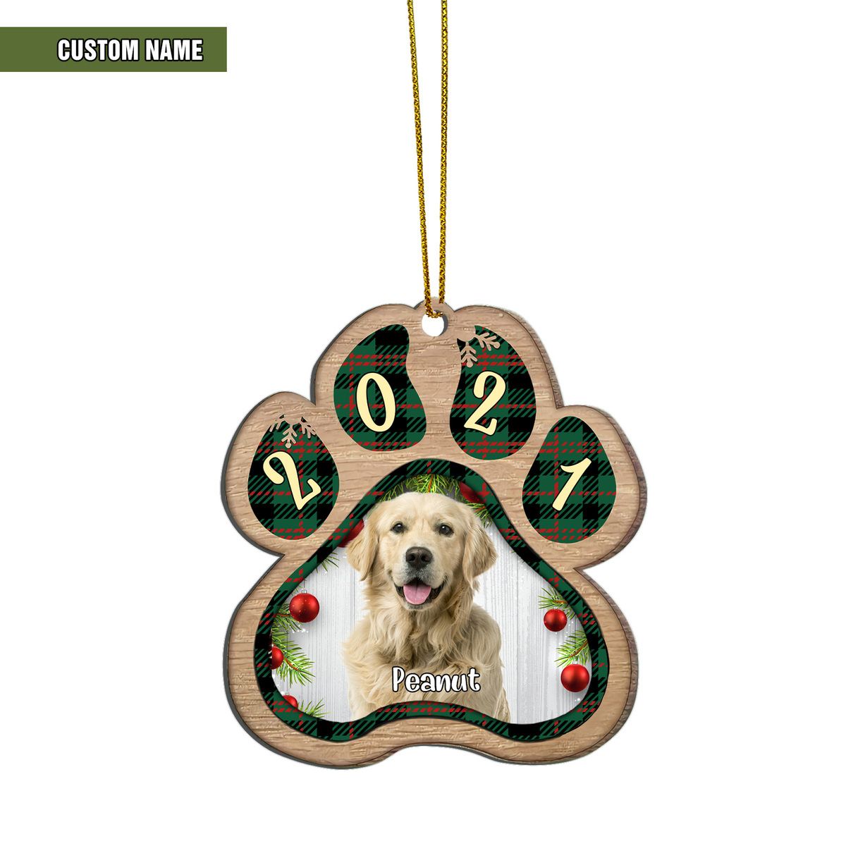Gearhumans 3D Christmas Dog Paw Ornament Custom Name Custom Photo Wood Ornament