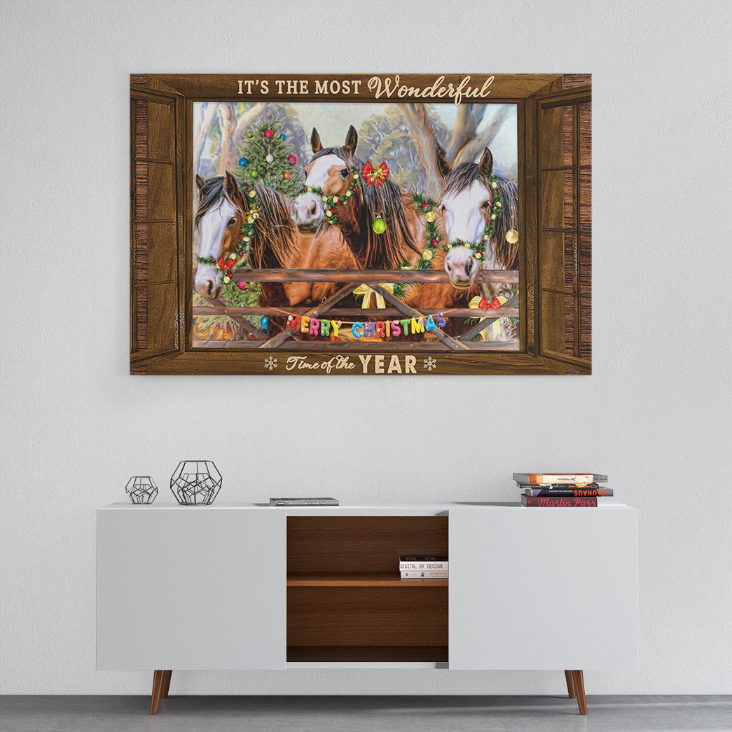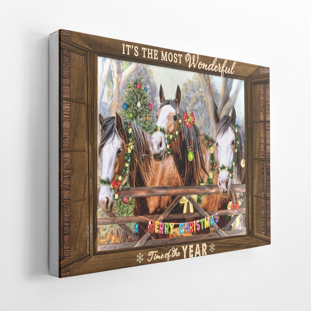 Gearhumans 3D Christmas Farmhouse Horse In Christmas Custom Canvas