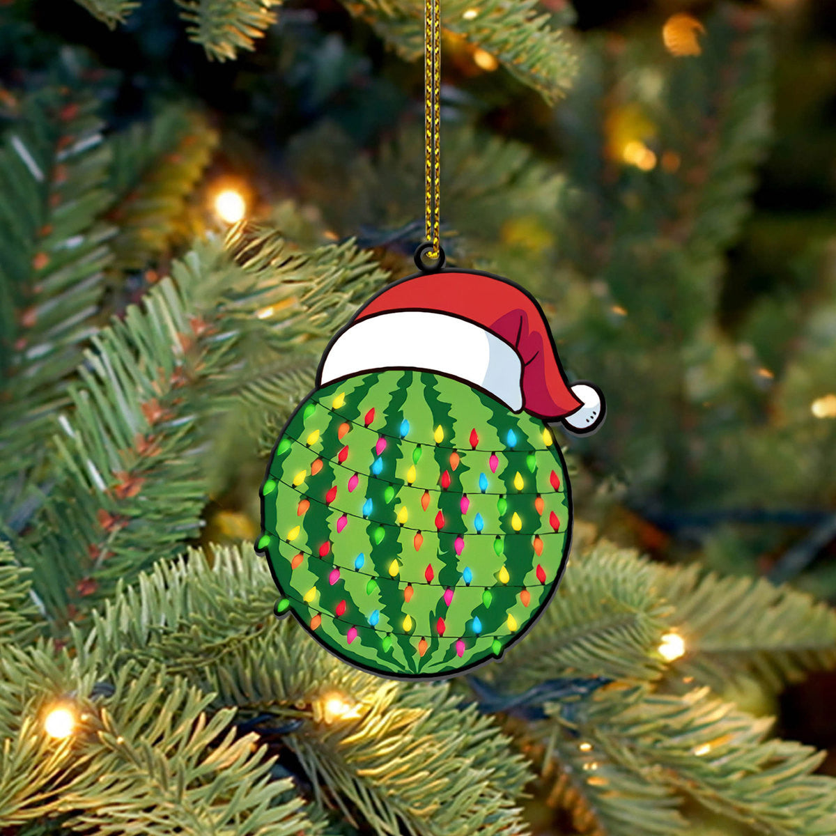 Gearhumans 3D Christmas Santa Hat Watermelon Fruit Christmas Custom Ornament