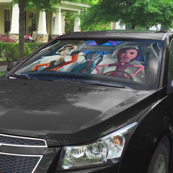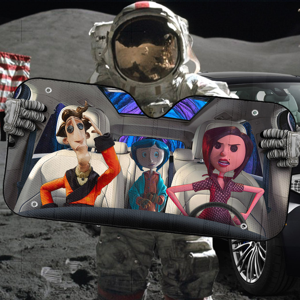 Gearhumans 3D Coraline Button Eyed Family Custom Car Auto Sunshade