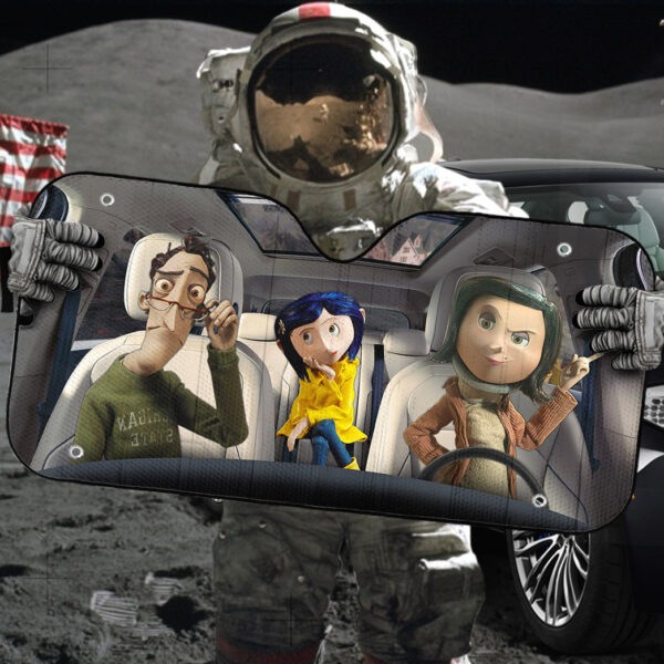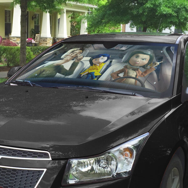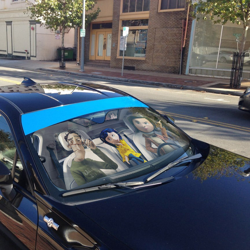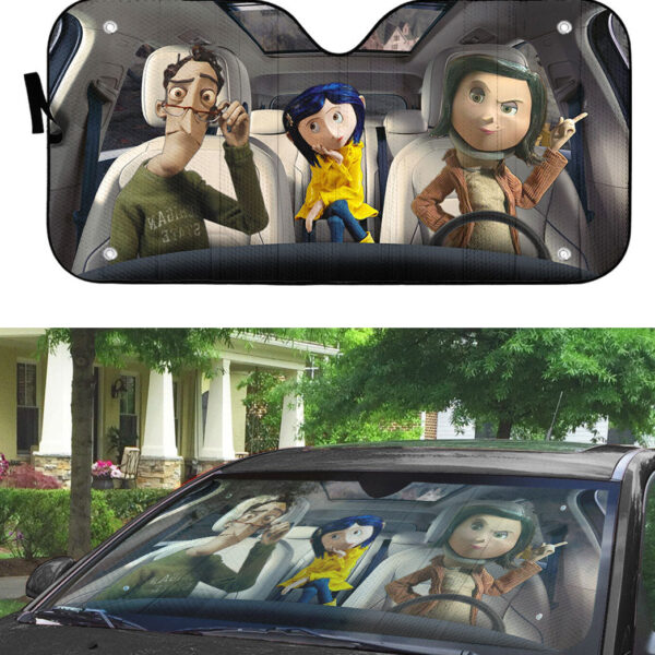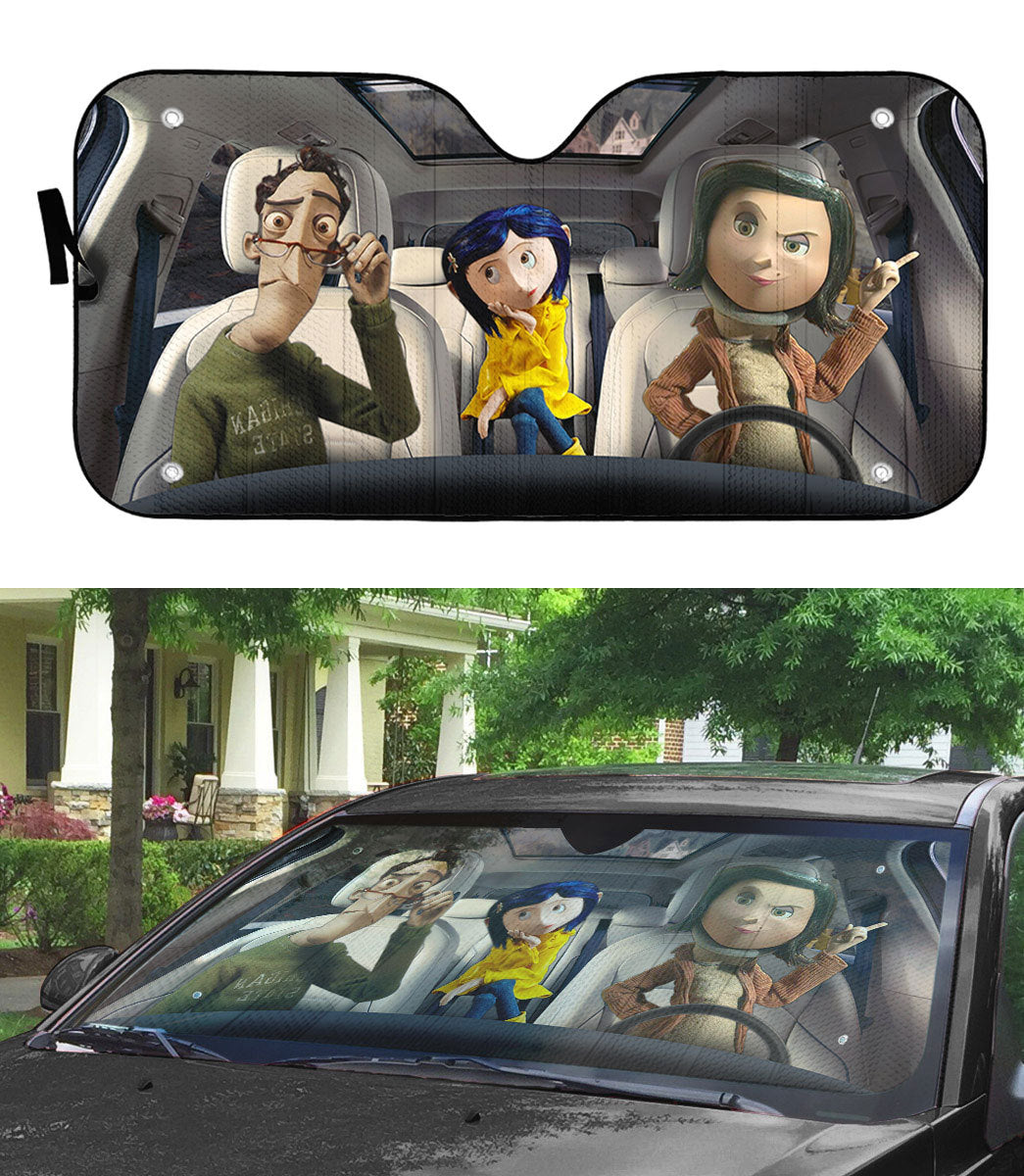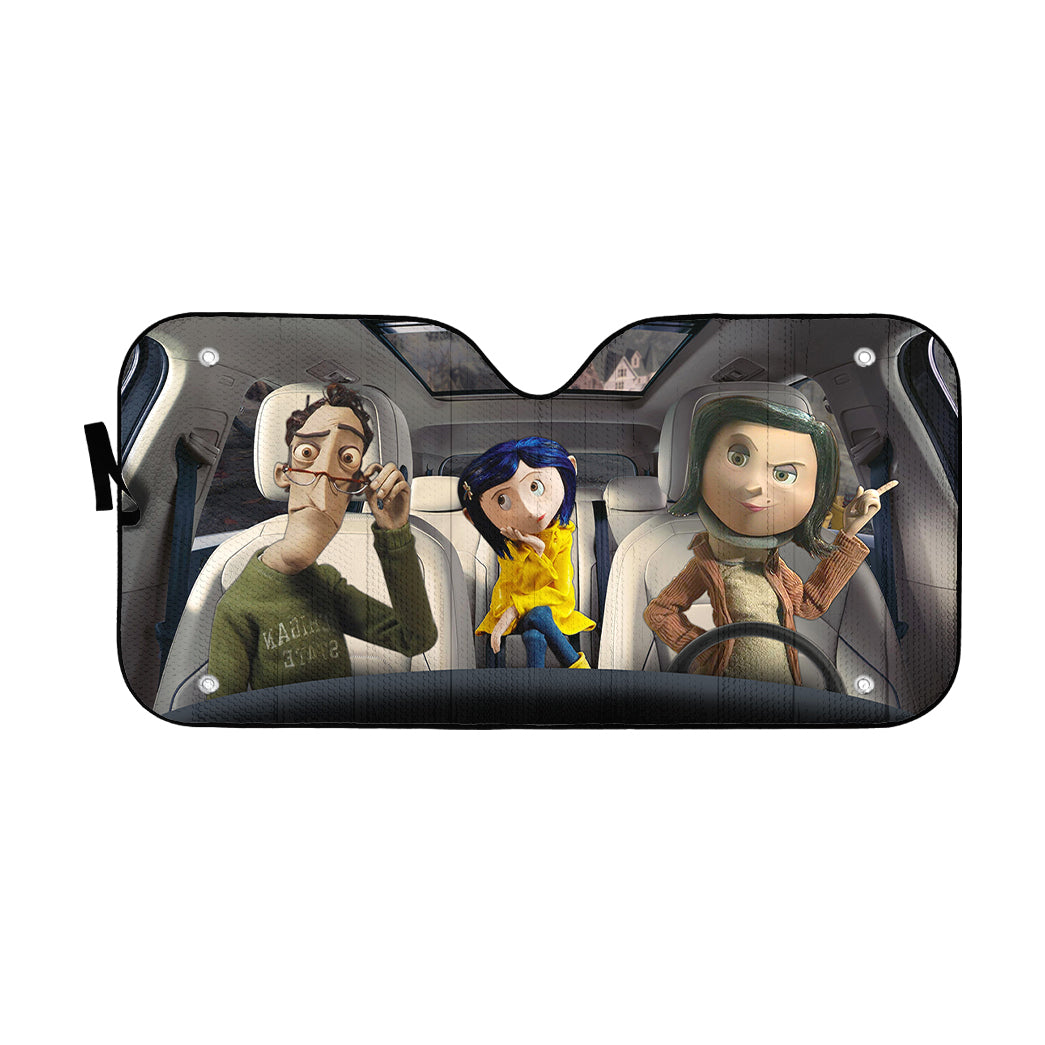 Gearhumans 3D Coraline Family Custom Car Auto Sunshade