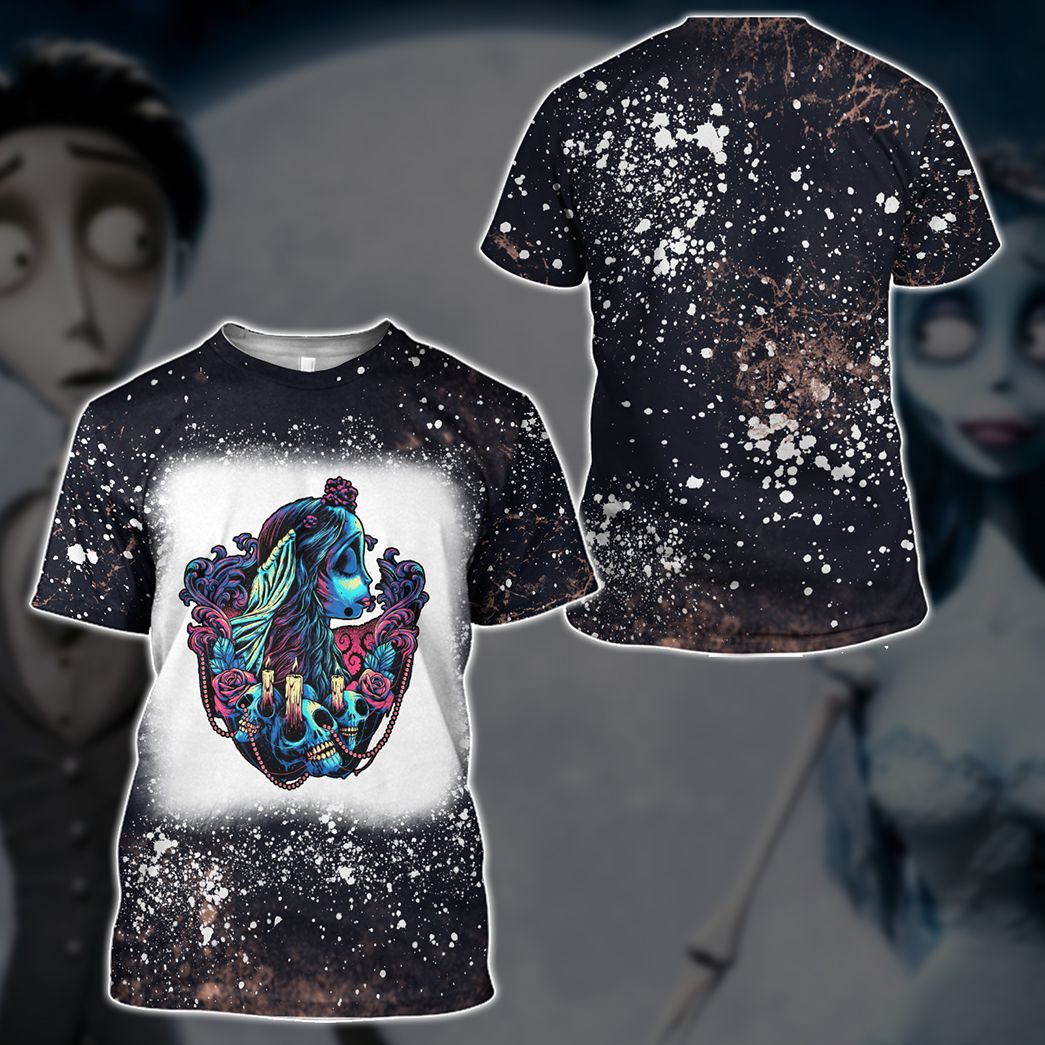 Gearhumans 3D Corpse Bride The Colorful Bride Custom Bleached Tshirt