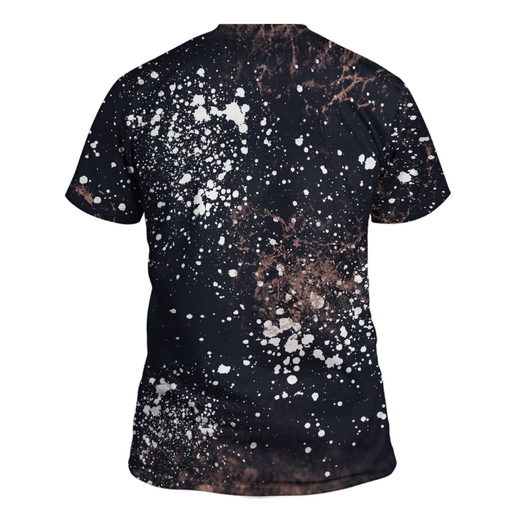 No shirt will be exactly the same due to the bleaching process. Bleach will be sprinkled on the back of the shirt as well.