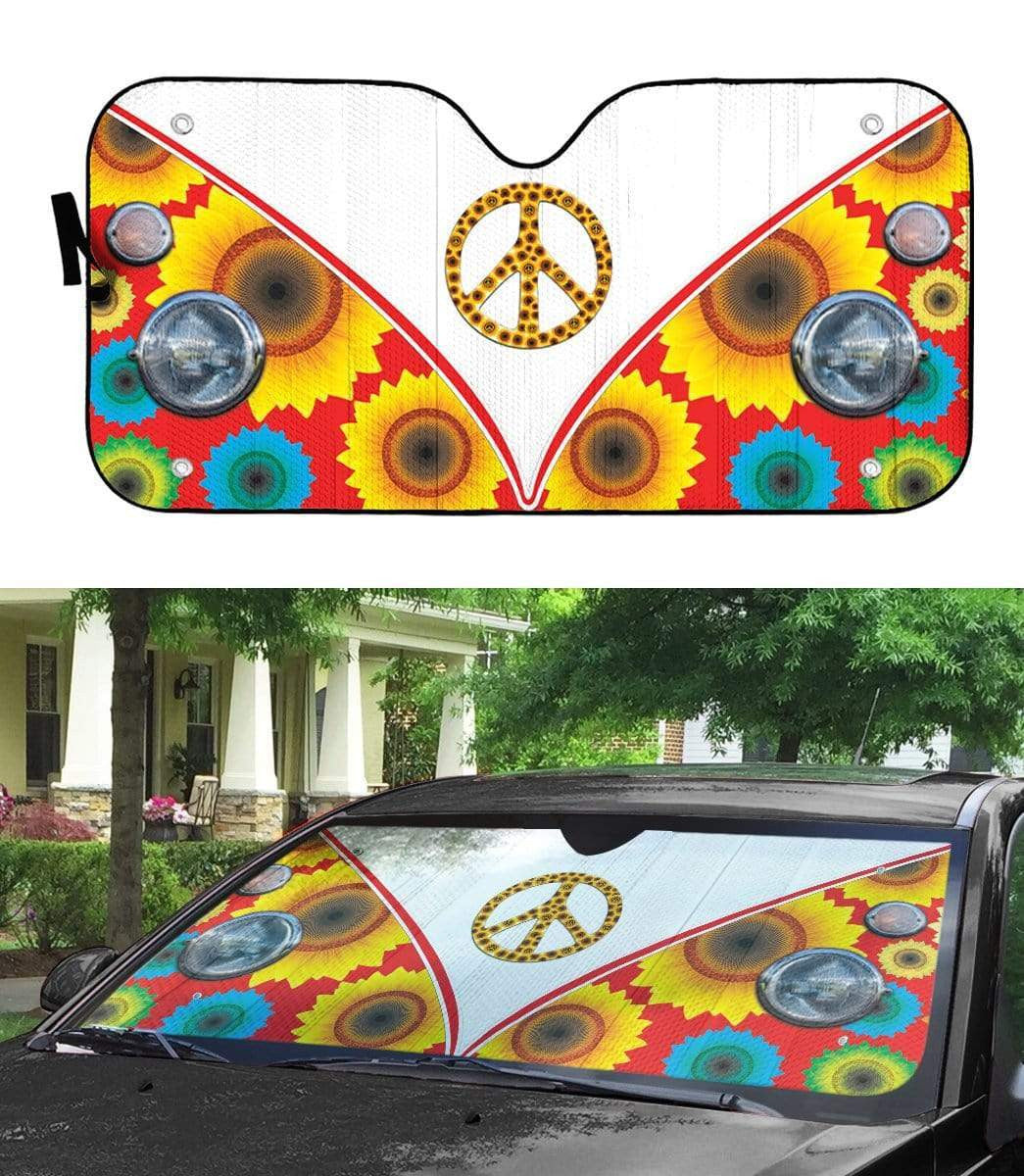 Gearhumans Custom Car Auto Sunshade Volkswagen Hippie Peace Sunflower