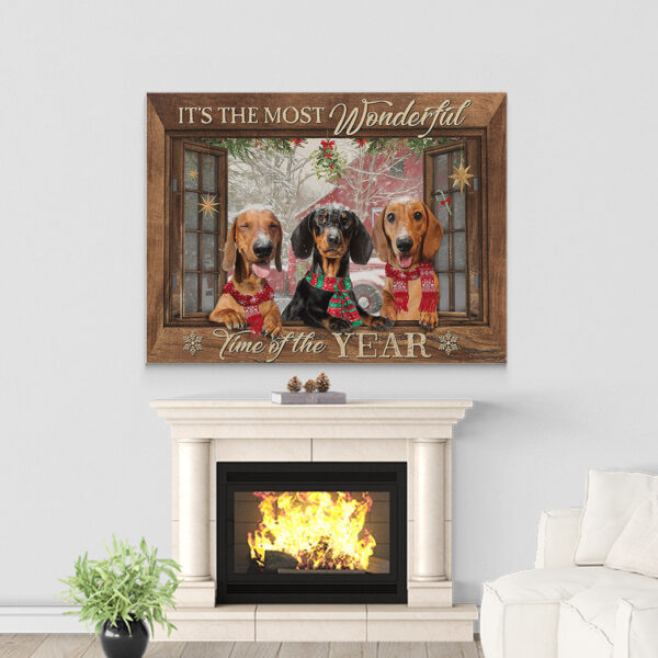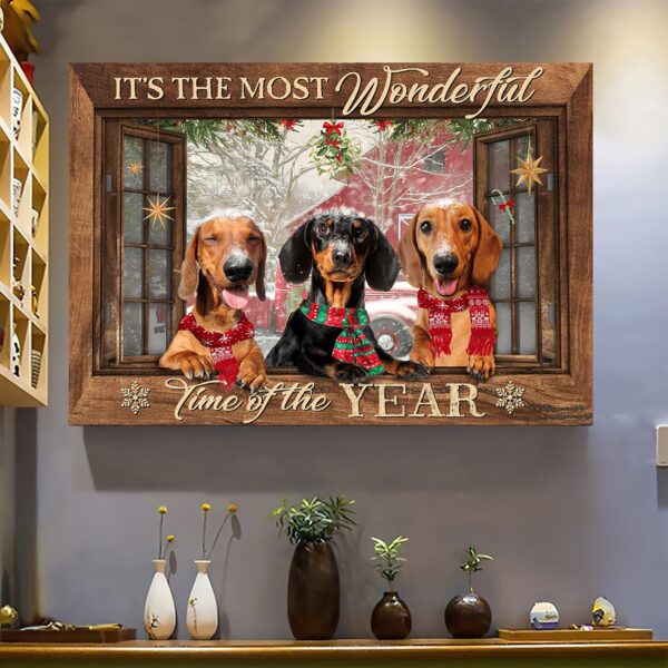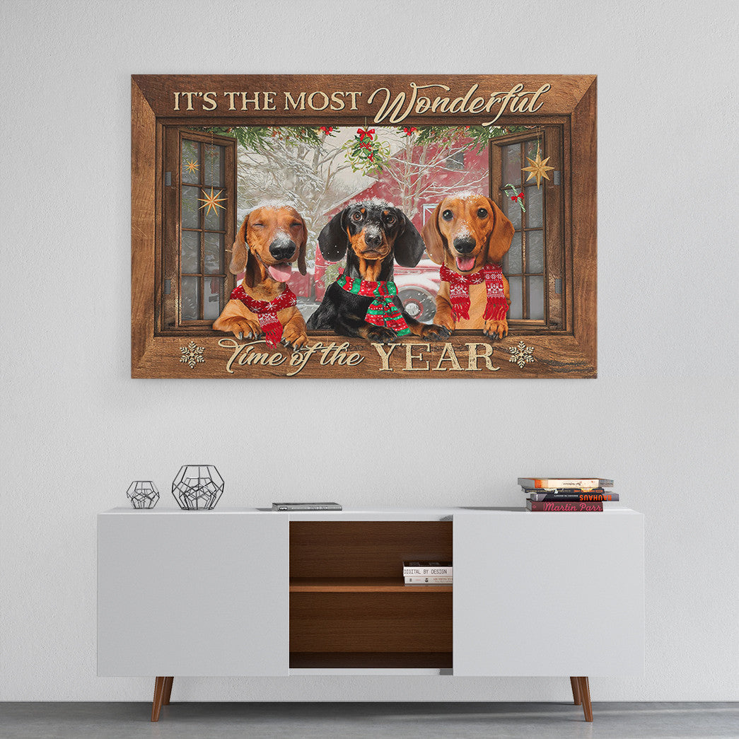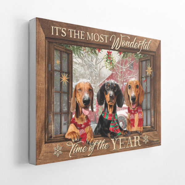 Gearhumans 3D Dachshund Its The Most Wonderful Time Of The Year Custom Canvas