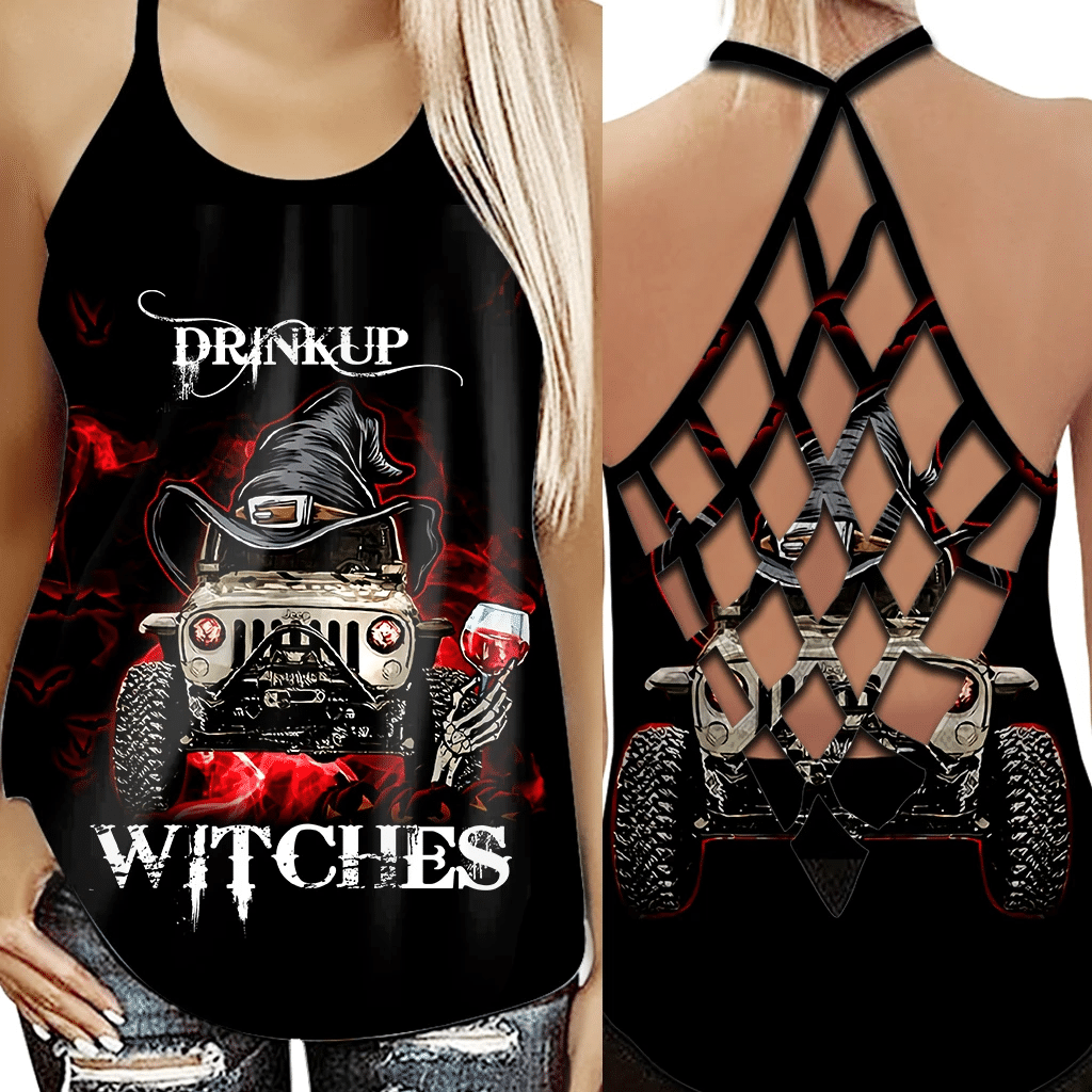 Gearhumans 3D Drink Up Witches Jeep Custom Cross Tank Top