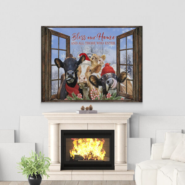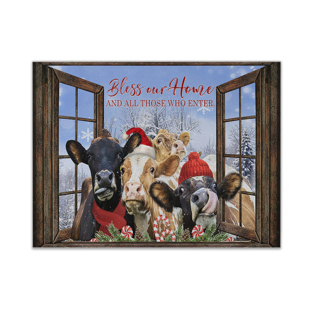 Gearhumans 3D Farmhouse Cow Christmas Bless Our Home And All Those Who Enter Custom Canvas