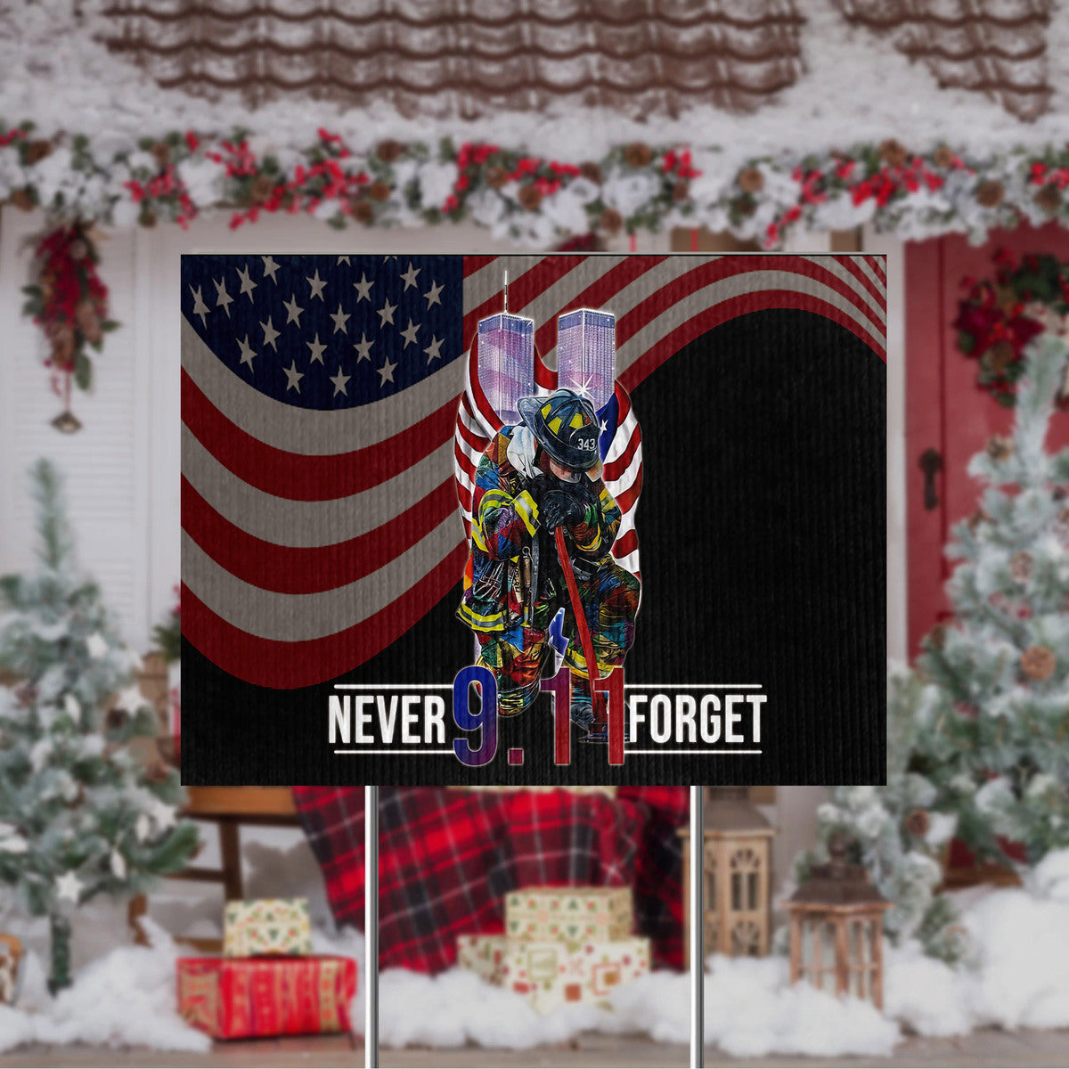 Gearhumans 3D Firefighter Patriot Day Never Forget Custom Yard Sign