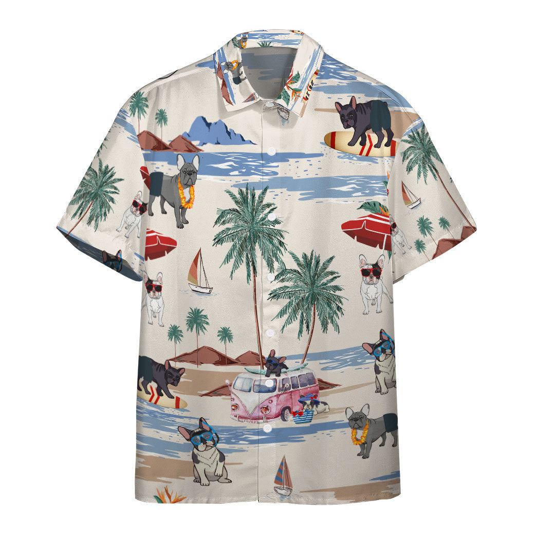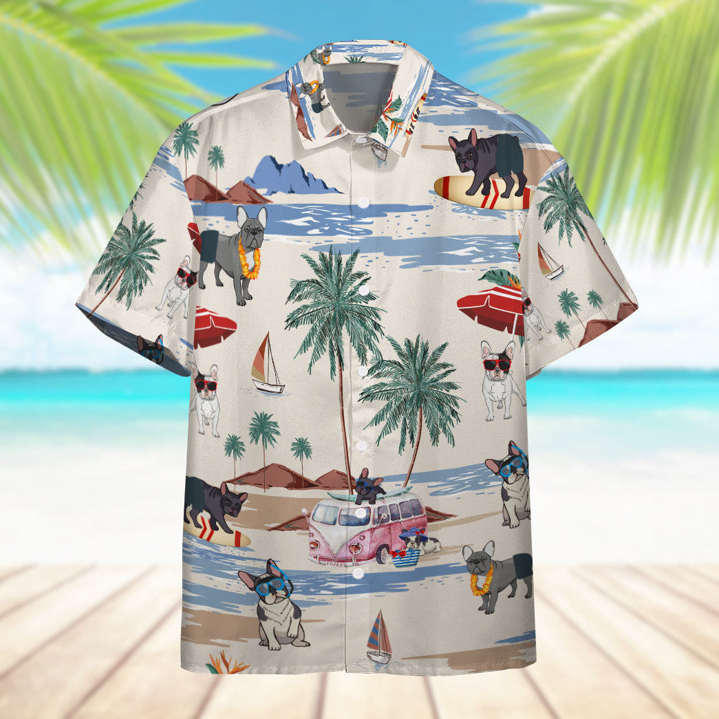 Gearhumans 3D French Bulldog Summer Beach Retro Custom Hawaiian Shirt
