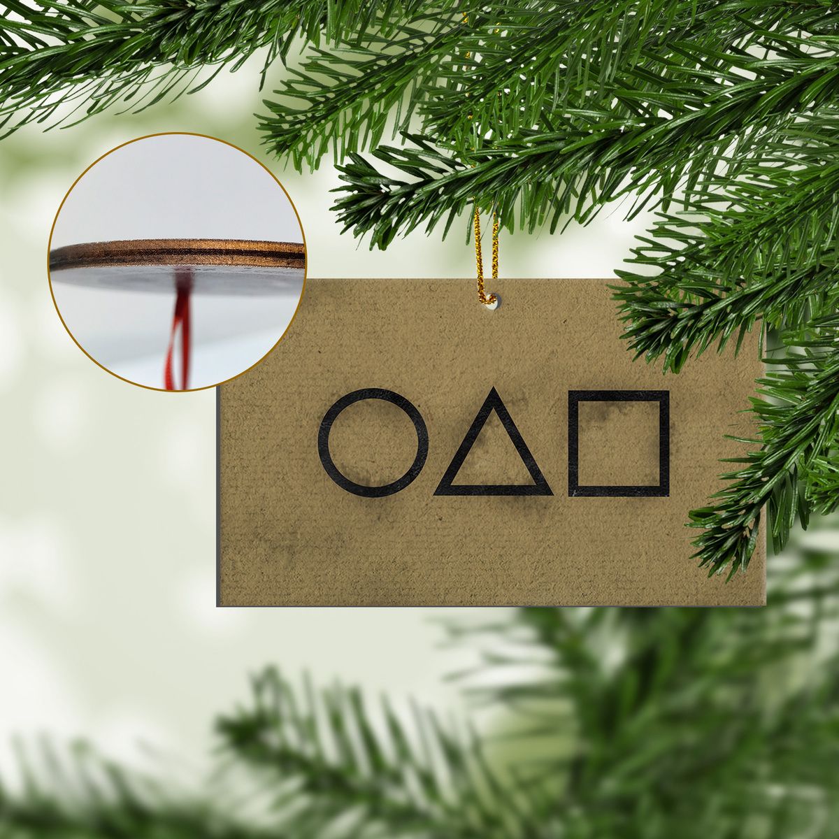 Gearhumans 3D Squid Game Invitation Card Christmas Custom Plastic Ornaments