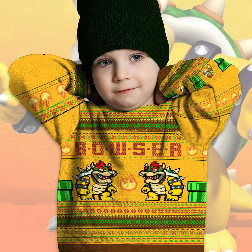 Gearhumans 3D Super Mario Bowser Custom Kid Ugly Long sleeve