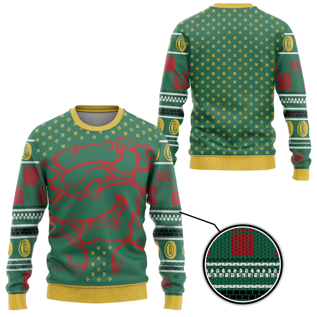 Gearhumans 3D Super Mario Bowser Knitted Christmas Ugly Custom Ugly Sweater
