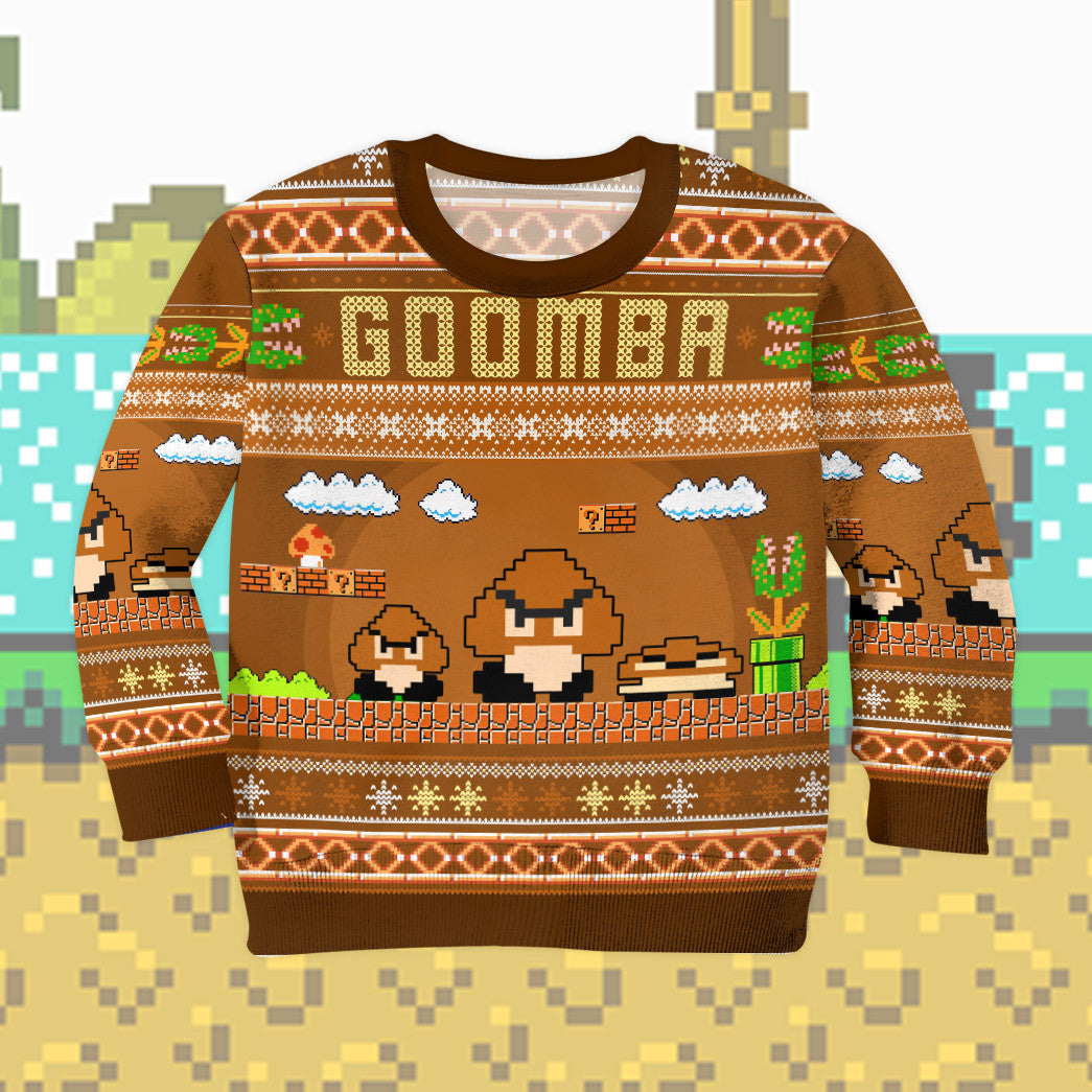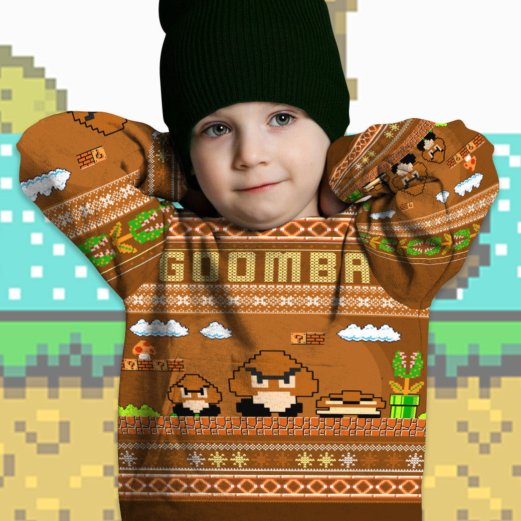 Gearhumans 3D Super Mario Goomba Custom Kid Ugly Sweater