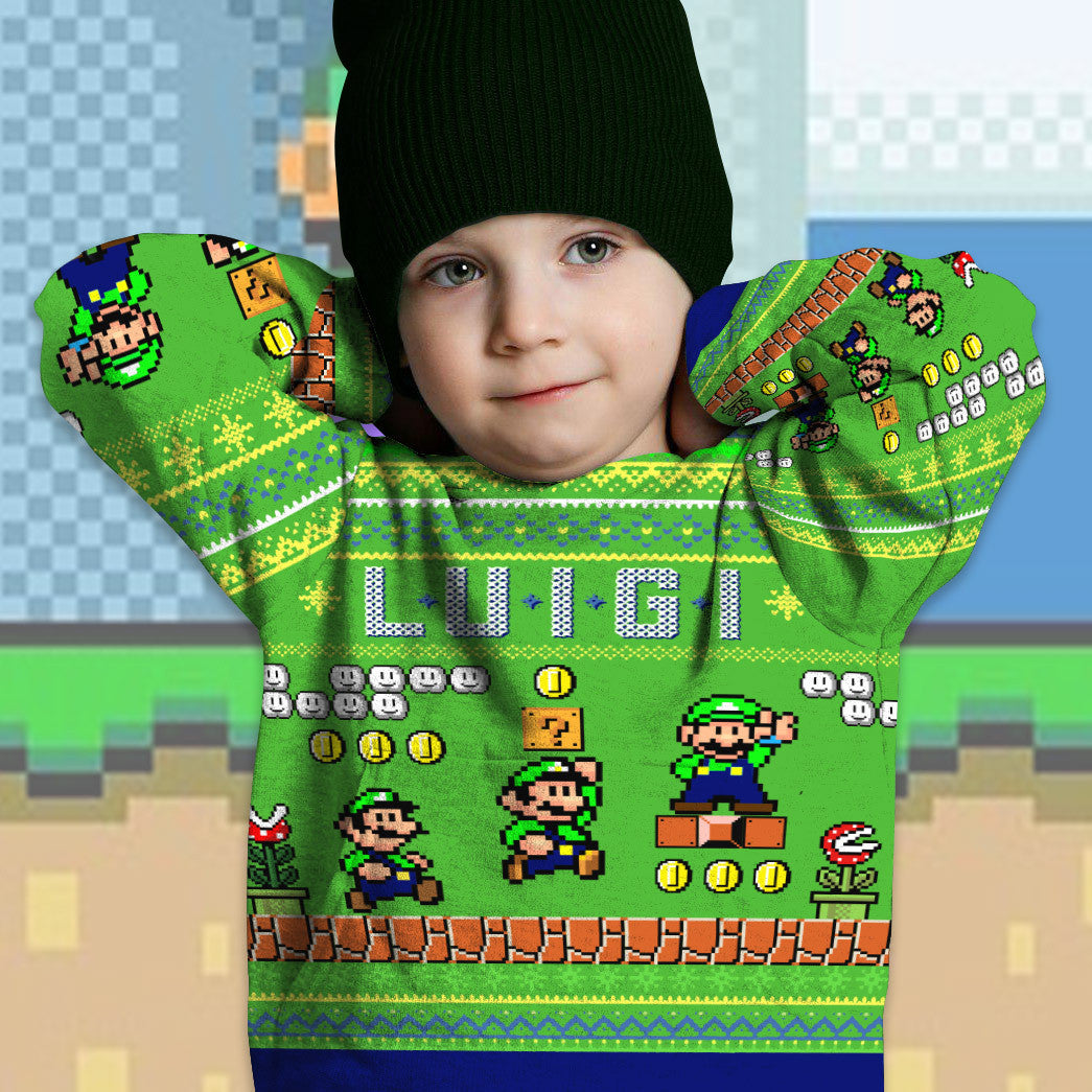 Gearhumans 3D Super Mario Luigi Custom Kid Ugly Sweater
