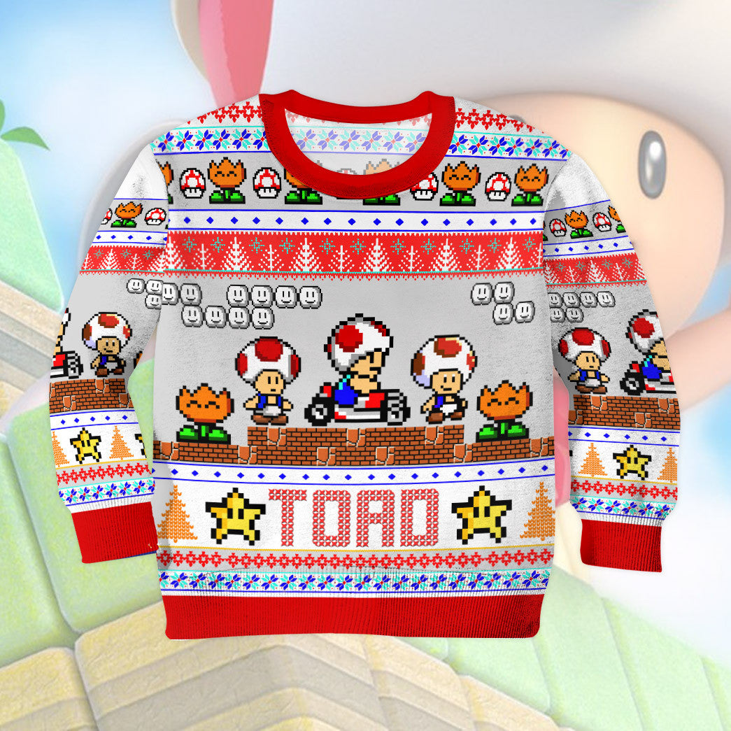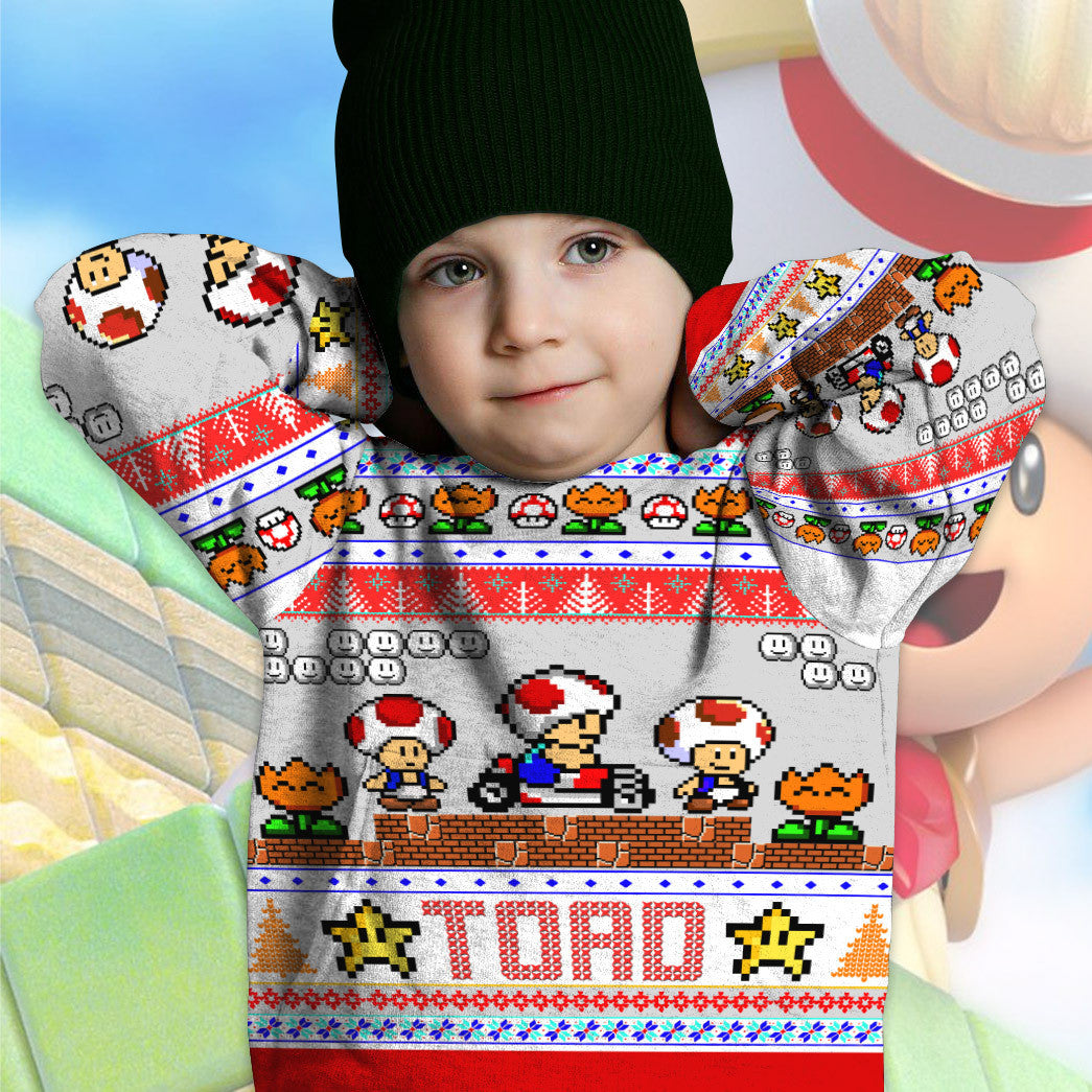 Gearhumans 3D Super Mario Toad Custom Kid Ugly Sweater
