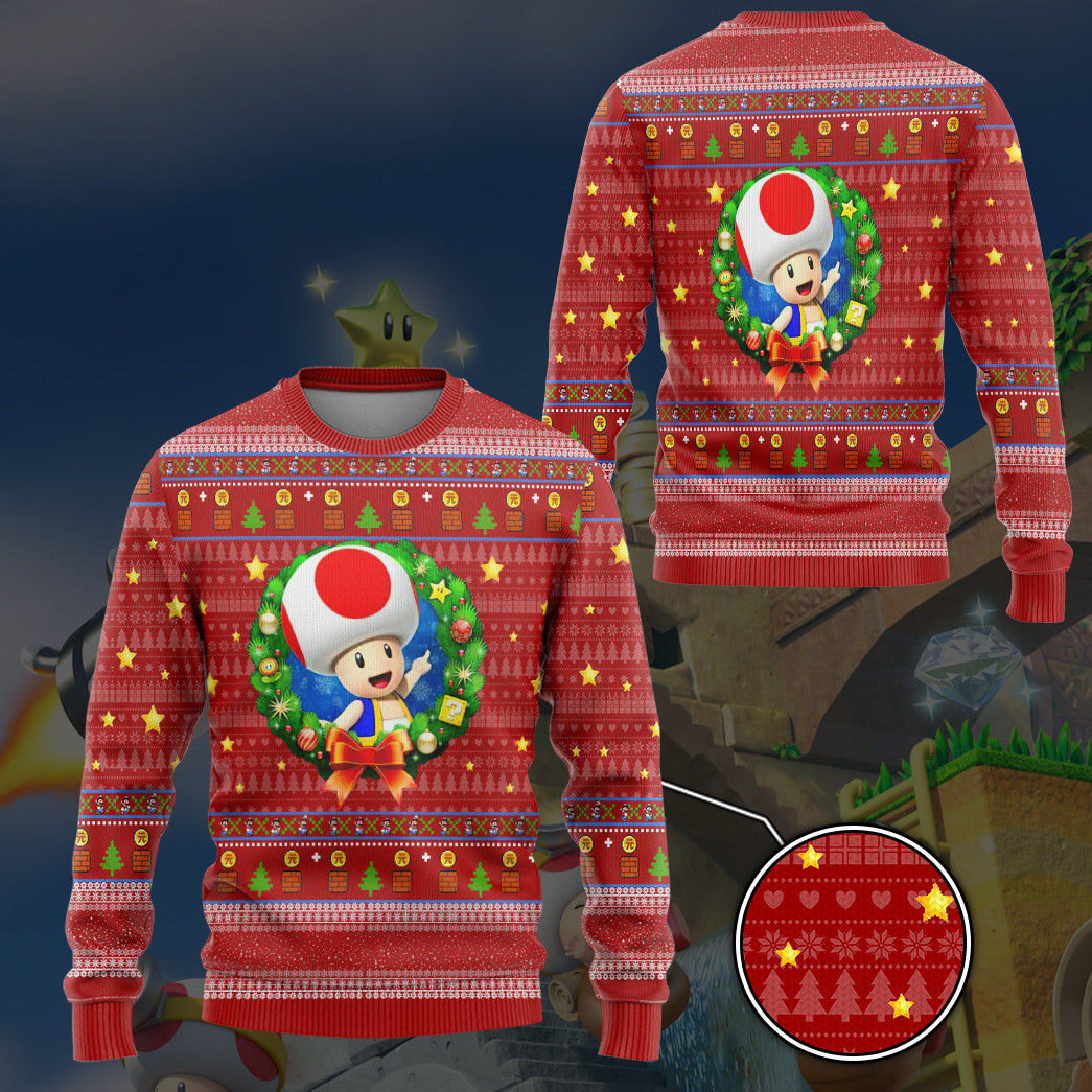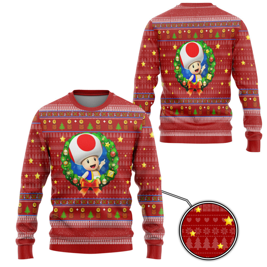 Gearhumans 3D Super Mario Toad Custom Ugly Christmas Sweater