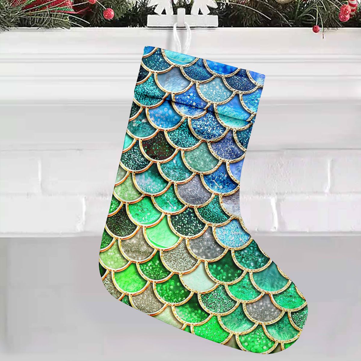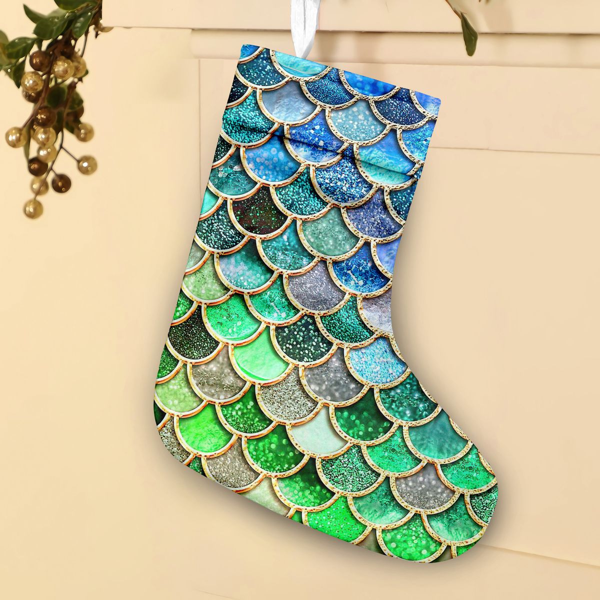 Gearhumans 3D THE MOST GREEN AND BLUE SPARKLE MERMAID TAIL IN THE OCEAN CUSTOM CHRISTMAS STOCKING